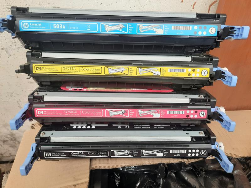 Продам комплект оригінальних картриджів HP 501A Black (Q6470A), HP 503A Cyan (Q7581A), HP 503A Yellow (Q7582A), HP 503A Magenta (Q7583A) , знятих з неробочого принтера. Картриджі - не заправлялись, можливо ще є з робочими чіпами та наявним тонером. Але, оскільки немає можливості перевірити, то продаютьс як першопрохідні. Сумісність для принтерів: HP COLOR LASERJET: 3600 , 3800 HP COLOR LASERJET CP: CP3505