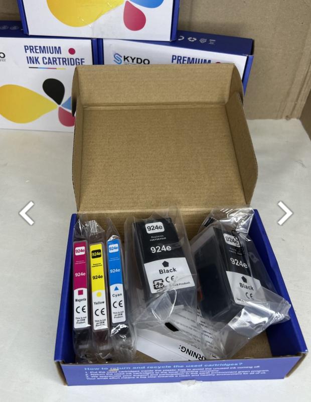 НАБОР картриджи 924 924e 924XL, подходящие к картриджем для принтера HP OfficeJet Pro 8135e 8134e 8132e 8122e 8124e 8125e 8120e 8130e Картридж hp hp 924e evomore голубой 4k0u7ne 4k0u8ne Картридж hp 924e evomore пурпурный 4k0u8ne 924e yellow evomore Картридж hp 924e yellow evomore Картридж hp 924e | 1 000 str. | черный 5 штук -999 гривен Только сделайте безопасную сделку. И проверьте на почте товар обязательно. Товар новый. Все запечатано один из кадриджей снята пленка. Только лишь. Важное примечание: На картриджах есть надпись "This is not an OEM Product", что означает, что это не оригинальные (совместимые) картриджи, а произведенные сторонней компанией. 🤔 Хорошие ли они? Качество совместимых (неоригинальных) картриджей, таких как SKyDO, может сильно варьироваться. Вот что следует учесть: Цена: Они, как правило, значительно дешевле оригинальных картриджей. Это их главный плюс. Качество печати: Для повседневной печати (документы, черновики) они часто вполне приемлемы. Однако, качество цветопередачи и долговечность печати (особенно фотографий) может быть ниже, чем у оригинальных. Совместимость и надежность: Иногда совместимые картриджи могут вызывать проблемы с распознаванием принтером (из-за чипов) или приводить к засорению печатающей головки, хотя современные модели обычно довольно надежны. ✅ Что вам нужно сделать: Поскольку отзывы в целом по совместимым картриджам очень индивидуальны и зависят от конкретного принтера, для получения наиболее точной информации нужно искать отзывы именно на модель SKyDO 924e (или просто SKyDO) для вашего конкретного принтера (например, HP OfficeJet Pro 9010e, если 924e — это модель для HP).