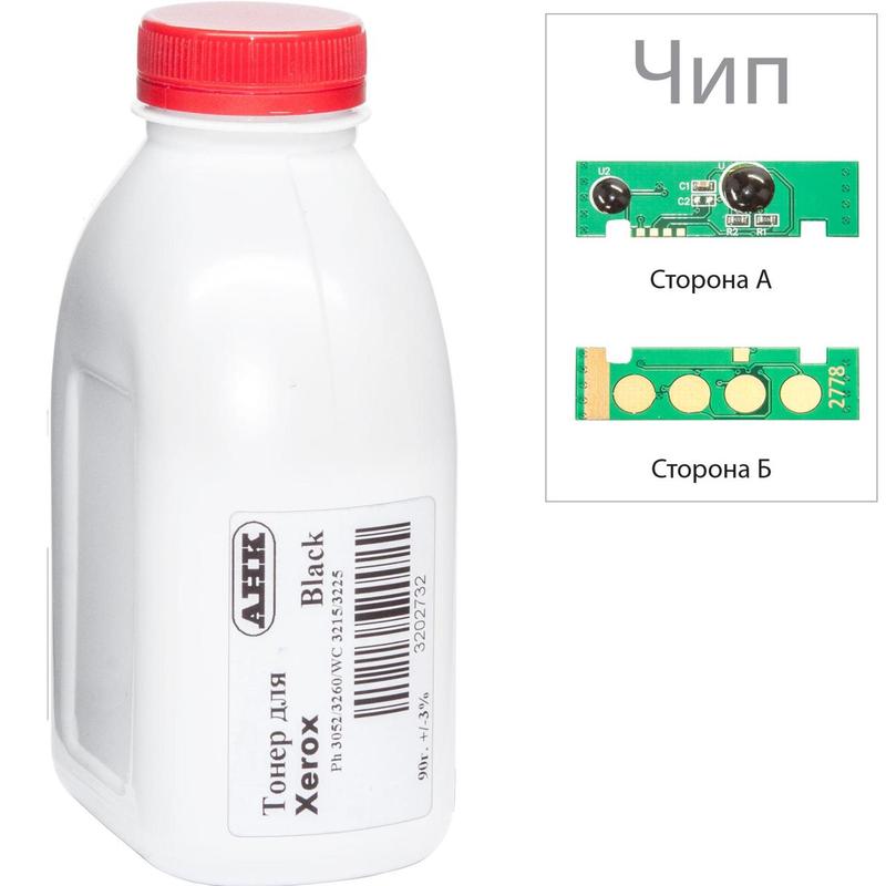 ![CDATA[ Тонер + чип АНК для Xerox Phaser 3052/WC 3215 бутль 90г Black (3202733) для Принтеров: Xerox PHASER 3052, 3260 Xerox WORKCENTRE 3215NI, 3225DNI для Картриджов: Xerox Black (106R02778), Xerox Dual Pack Black (106R02782), ]]