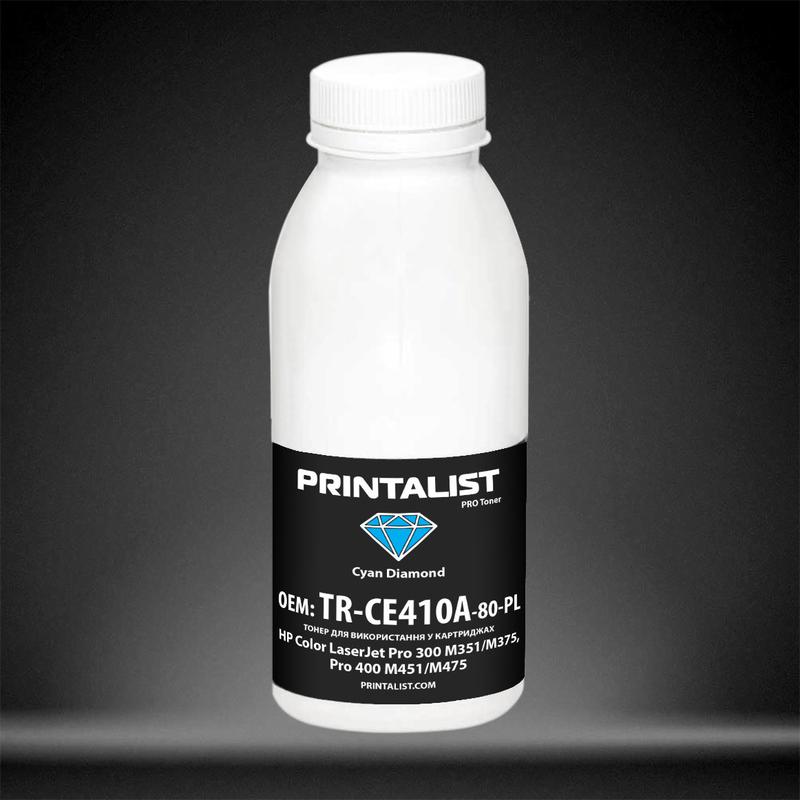 ![CDATA[ Тонер PRINTALIST для HP CLJ Pr**********, Pr********** бутль 80г Cyan (TR-CE410A-80-PL) для Принтеров: HP COLOR LASERJET PRO 300 M M351A, M375 HP COLOR LASERJET PRO 400 M M451, M475 для Картриджов: HP 305A Cyan (CE411A), ]]