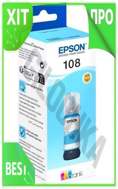 Ve чорнило epson 108 light new version cyan 70 мл водорозчинне для принтерів друк кольоров...