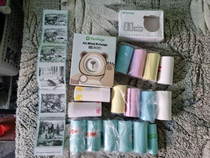 Любовные записки? Список покупок? Маркировочные наклейки? Открытки из вайбера? Принтер PeriPage может напечатать все это - и даже больше! Этого медведя можно подключить к телефону через приложение, где можно указать желаемую картинку из галереи или вручную ввести текст - и он это напечатает. А поскольку это термопринтер, то и заправлять чернилами его не нужно - можно даже регулировать силу нагрева при печати. (чтобы текст был четче, а картинки ярче) Если его почистить, он станет печатать еще четче - нет предела совершенству! Что в наборе: * комплект из принтера Peripage, инструкции, зарядного провода micro-usb, коробки и открыток из вайбера * новые, эксклюзивные рулоны с наклейками с медведями на фоне * не новый, но все еще эксклюзивный рулон с синими наклейками с медведями на фоне * рулоны голубой самоклеющейся бумаги * рулоны обычной белой бумаги * наборы обычной цветной бумаги - по одному желтому, розовому и голубому рулону Продаются только вместе.