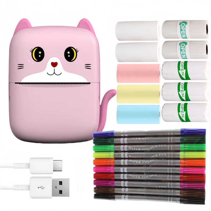 Детский принтер для телефона bluetooth термопринтер портативний мини принтер для печати фото с телефона Невероятный маленький принтер Mini Printer поможет вашему ребенку почувствовать себя совсем взрослым, а также лучше запомнить буквы, цифры, новые слова, в игровой форме. На нём можно печатать раскраски, прописи, буквы, цифры, любимых персонажей, фотографии и многое другое, что сможет отвлечь вашего ребенка либо помочь в развивающих занятиях. Для более взрослых пользователей, это незаменимый помощник, который позволит записать, передать сообщение, снять снимок, скриншоты. На данном принтере можно печатать любую текстовую или графическую информацию прямо с вашего смартфона через bluetooth соединение. Благодаря своим компактным размерам, блютуз принтер всегда можно положить в карман куртки или небольшую сумку. Никаких проводов, вся работа с мобильным принтером происходит при помощи Bluetooth 4.0 и вашего смартфона. Не стоит беспокоиться, что в нужный момент в карманном принтере закончатся чернила, так как печать происходит без их помощи, а методом нагрева термобумаги. Особенности устройства: - Термопечать без использования краски - Прямая печать со смартфона через фирменное приложение WalkPrint - Портативный и автономный мобильный принтер с встроенным аккумулятором 1000 мАч - Быстрое прямое соединение с вашим смартфоном по bluetooth каналу через фирменное приложение. - Просмотр содержимого перед печатью на экране вашего телефона. - Сохранение истории всей распечатанной информации. Технические характеристики: - Тип: карманный принтер, портативный bluetooth принтер - Тип печати: Термопечать. - Цвет печати: Черно-белая - Ширина печати: 53 мм - Расходные материалы: рулонная термобумага. - Размер бумаги: ширина 57мм. - Способ подключения: по Bluetooth. - Поддерживаемые смартфоны: Android, IOS. - Питание: встроенный аккумулятор 1000 мАч. - Размер: 113x 80 x 38мм. Комплектация: - Портативный термопринтер - 1 шт - Рулонная термобумага белая - 2 шт (1 в принтере + 1 дополнительно) - Рулонная термобумага белая самоклеющаяся - 3 шт - Рулонная термобумага прозрачная самоклеющаяся - 2 шт - Рулонная термобумага цветная - 3 шт (желтая - 1 шт, голубая - 1 шт, розовая - 1 шт) - USB кабель для зарядки - 1 шт - Двухсторонние фломастеры набор 10 шт - Инструкция