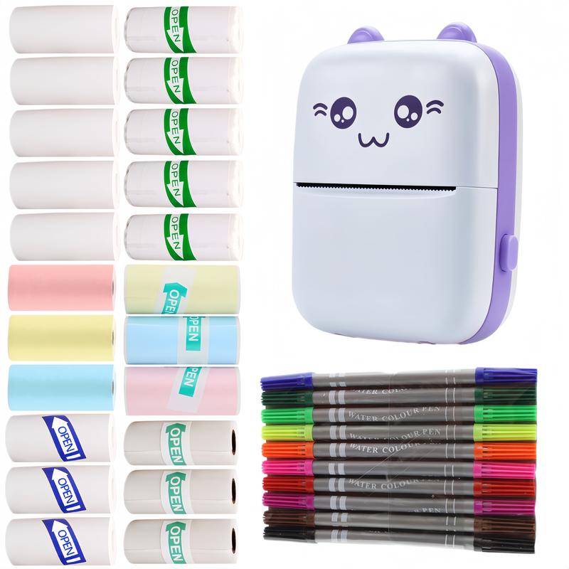 Беспроводной мини принтер блютуз термопринтер детский фотопринтер карманный портативный mini принтер Невероятный маленький принтер Mini Printer поможет вашему ребенку почувствовать себя совсем взрослым, а также лучше запомнить буквы, цифры, новые слова, в игровой форме. На нём можно печатать раскраски, прописи, буквы, цифры, любимых персонажей, фотографии и многое другое, что сможет отвлечь вашего ребенка либо помочь в развивающих занятиях. Для более взрослых пользователей, это незаменимый помощник, который позволит записать, передать сообщение, снять снимок, скриншоты. На данном принтере можно печатать любую текстовую или графическую информацию прямо с вашего смартфона через bluetooth соединение. Благодаря своим компактным размерам, блютуз принтер всегда можно положить в карман куртки или небольшую сумку. Никаких проводов, вся работа с мобильным принтером происходит при помощи Bluetooth 4.0 и вашего смартфона. Не стоит беспокоиться, что в нужный момент в карманном принтере закончатся чернила, так как печать происходит без их помощи, а методом нагрева термобумаги. Особенности устройства: - Термопечать без использования краски - Прямая печать со смартфона через фирменное приложение FunPrint - Портативный и автономный мобильный принтер с встроенным аккумулятором 1000 мАч - Быстрое прямое соединение с вашим смартфоном по bluetooth каналу через фирменное приложение. - Просмотр содержимого перед печатью на экране вашего телефона. - Сохранение истории всей распечатанной информации. Технические характеристики: - Тип: карманный принтер, портативный bluetooth принтер - Тип печати: Термопечать. - Цвет печати: Черно-белая - Ширина печати: 53 мм - Расходные материалы: рулонная термобумага. - Размер бумаги: ширина 57мм. - Способ подключения: по Bluetooth. - Поддерживаемые смартфоны: Android, IOS. - Питание: встроенный аккумулятор 1000 мАч. - Размер: 113x 80 x 38мм. Комплектация: - Портативный термопринтер - 1 шт - Рулонная термобумага белая - 5 шт (1 в принтере + 4 дополнительно) - Рулонная термобумага белая самоклеющаяся - 5 шт - Рулонная термобумага прозрачная самоклеющаяся - 3 шт - Рулонная термобумага цветная - 3 шт (желтая - 1 шт, голубая - 1 шт, розовая - 1 шт) - Рулонная термобумага цветная самоклеющаяся - 3 шт (желтая - 1 шт, голубая - 1 шт, розовая - 1 шт) - Рулонная термобумага белая (печатает синим цветом) - 3 шт - USB кабель для зарядки - 1 шт - Двухсторонние фломастеры набор 10 шт - Инструкция