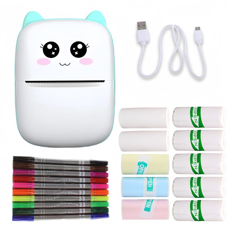 Принтер для печати этикеток и наклеек беспроводной мини принтер для телефона термопринтер для детей Невероятный маленький принтер Mini Printer поможет вашему ребенку почувствовать себя совсем взрослым, а также лучше запомнить буквы, цифры, новые слова, в игровой форме. На нём можно печатать раскраски, прописи, буквы, цифры, любимых персонажей, фотографии и многое другое, что сможет отвлечь вашего ребенка либо помочь в развивающих занятиях. Для более взрослых пользователей, это незаменимый помощник, который позволит записать, передать сообщение, снять снимок, скриншоты. На данном принтере можно печатать любую текстовую или графическую информацию прямо с вашего смартфона через bluetooth соединение. Благодаря своим компактным размерам, блютуз принтер всегда можно положить в карман куртки или небольшую сумку. Никаких проводов, вся работа с мобильным принтером происходит при помощи Bluetooth 4.0 и вашего смартфона. Не стоит беспокоиться, что в нужный момент в карманном принтере закончатся чернила, так как печать происходит без их помощи, а методом нагрева термобумаги. Особенности устройства: - Термопечать без использования краски - Прямая печать со смартфона через фирменное приложение WalkPrint - Портативный и автономный мобильный принтер с встроенным аккумулятором 1000 мАч - Быстрое прямое соединение с вашим смартфоном по bluetooth каналу через фирменное приложение. - Просмотр содержимого перед печатью на экране вашего телефона. - Сохранение истории всей распечатанной информации. Технические характеристики: - Тип: карманный принтер, портативный bluetooth принтер - Тип печати: Термопечать. - Цвет печати: Черно-белая - Ширина печати: 53 мм - Расходные материалы: рулонная термобумага. - Размер бумаги: ширина 57мм. - Способ подключения: по Bluetooth. - Поддерживаемые смартфоны: Android, IOS. - Питание: встроенный аккумулятор 1000 мАч. - Размер: 113x 80 x 38мм. Комплектация: - Портативный термопринтер - 1 шт - Рулонная термобумага белая - 2 шт (1 в принтере + 1 дополнительно) - Рулонная термобумага белая самоклеющаяся - 5 шт - Рулонная термобумага цветная самоклеющаяся - 3 шт (желтая - 1 шт, голубая - 1 шт, розовая - 1 шт) - USB кабель для зарядки - 1 шт - Двухсторонние фломастеры набор 10 шт - Инструкция