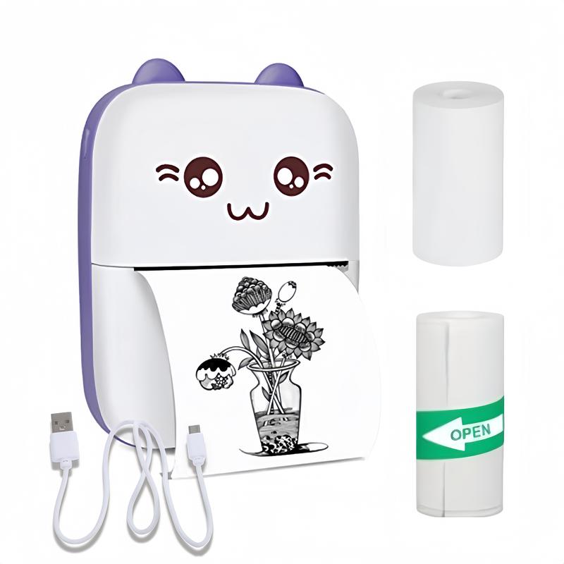 Минипринтер портативный термопринтер мини принтер котик детский принтер мини принтер блюту...