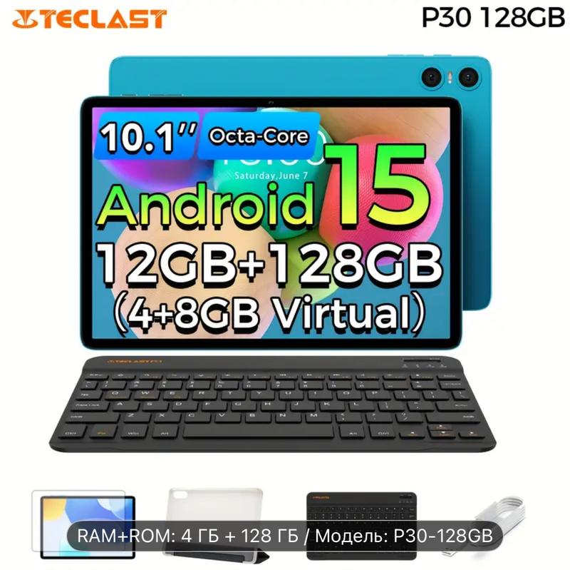 Teclast P30 Планшет 10.1 дюйма 4ГБ ОЗП/128ГБ Вбудованої пам’яті Unisoc T606 8-ядерний 1.6 ГГц 1280×800 IPS / WIFI / 6000 мАг / Type-C / 5МП+2МП Камера / Android 14 Клавіатура, Комплект аксесуарів, Домашній розважальний пристрій, Мультимедійний планшет, Компактний планшет, Стильний планшет, Ефективне охолодження, Міцна конструкція, Процесор Unisoc, Роз’єм TypeC, Таблет для професіоналів та домашніх користувачів