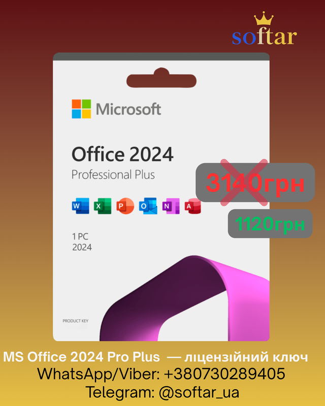 📦 Microsoft Office 2024 Pro Plus – лицензионный ключ 🔑 Новейшая версия — Microsoft Office 2024 Pro Plus ✔ Включає: Word, Excel, PowerPoint, Outlook, Access, OneNote, Publisher ✔ Работает на Windows 10 и Windows 11 ✔ Стабильная пожизненная лицензия (без подписок) ✔ Мгновенная доставка ключа после покупки ✔ Актуальный Traterd для установки 📦 У комплекті: • Лицензионный ключ Office 2024 Pro Plus •висит на официальный инсталлятор • Пошаговая инструкция 💵 Цена: 1120 грн (актуальная новинка)