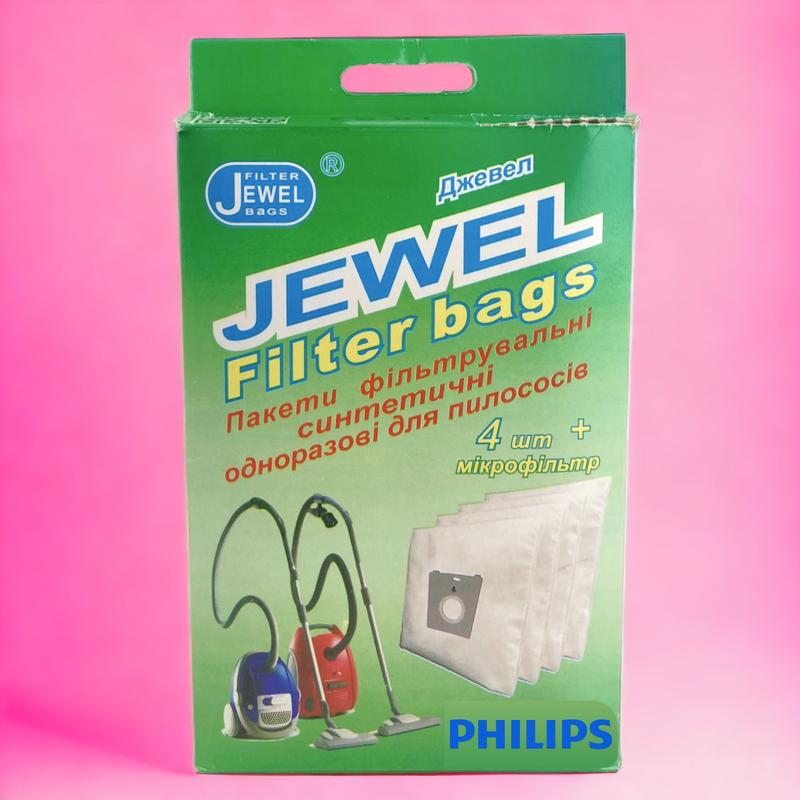 Комплект одноразовых четырехслойных мешков для пылесоса philips jewel fs-08 (комплект 4 шт...