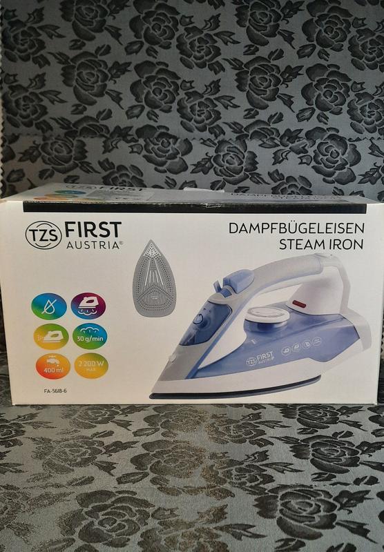 Праска FIRST з парою,функція захісту від накипу,керамічна підошва,регульована подача пари,вертікальне відпарювання.Потужність:2000вт.