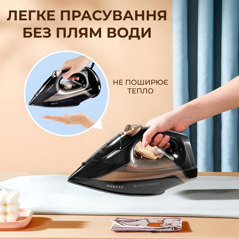 Беспроводной паровой утюг SOKANY SK-286 - надежный и нужный помощник для каждой хозяйки. Используется качественная и надежная электроника, корпус выполнен из прочного износостойкого пластика. Керамическая подошва устойчива к царапинам, хорошо скользит и удобна в использовании. Утюг имеет регулятор подачи пара, благодаря продуманной конструкции подошвы пар распределяется по ней равномерно, поэтому для увлажнения ткани требуется меньше движений. Мощный паровой удар позволит осилить самые сложные места, разгладить сильно смятые и пересохшие вещи. Функция парогенерации даст возможность справиться со шторами или пальто, а также идеально подходит для деликатных тканей. Система "Антикапля" предотвратит попадание воды на одежду, которая при низкой температуре не успевает превратиться в пар. Для того чтобы увлажнить и улучшить качество глажки, утюг оснащен функцией разбрызгивания воды. Характеристики: Мощность: 2600Вт 2 температурных режима Режим сухой/паровой глажки Вертикальное отпаривание Паровой удар Система самоочистки Система "капля-стоп" ANTI-DRIP Защита от накипи ANTI-CALC Постоянная подача пара 40 г/мин Паровой удар: 120 г/мин Емкость резервуара для воды: 420 мл