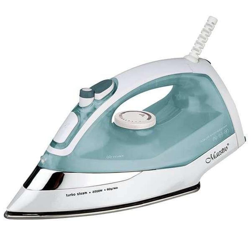 Торговая марка: Maestro Основные рабочие режимы: сухое глажение, разбрызгивание, отпаривание Вместительность резервуара: 300 мл Подошва: керамическое покрытие Световой индикатор работы Защита от перегрева Дополнительные функции: вертикальное отпаривание, «паровой удар», самоочистка Цвета: белый корпус с вставкой хром, голубой резервуар 220-240В, ~50Гц, 2000Вт Гарантия 12 месяцев