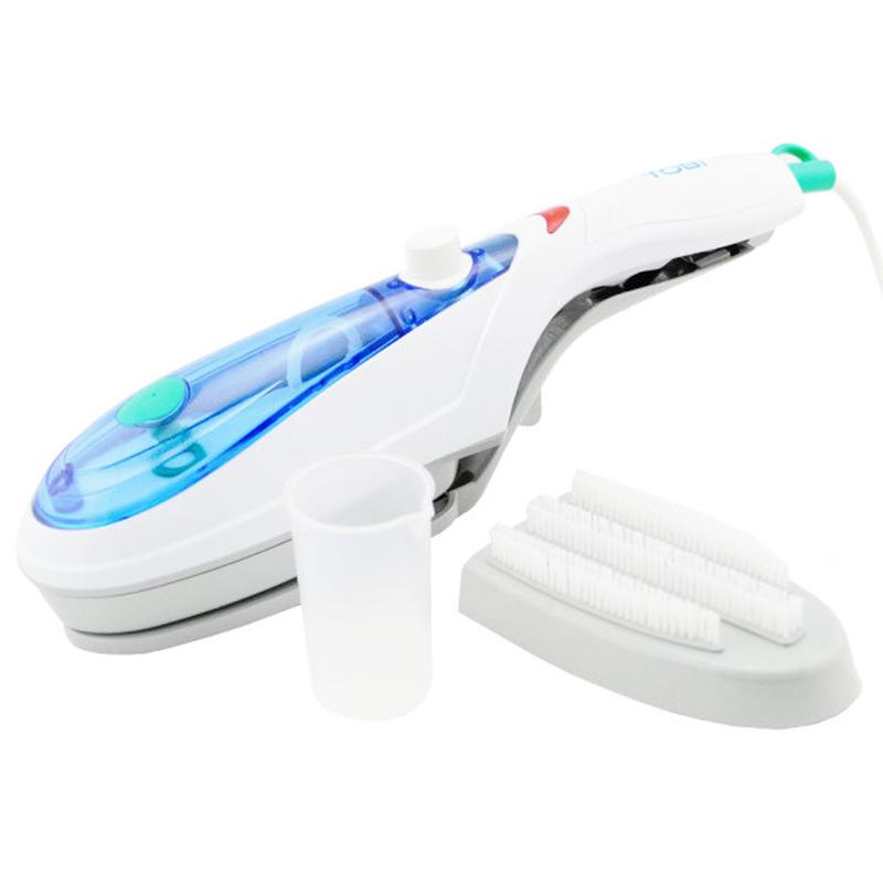 Ручной отпариватель TOBI Travel Steamer имеет две основных функции: отпаривание и глажка. Хорошо удаляет все неприятные запахи, справляется с глажкой не только одежды, но и любого домашнего текстиля, шелк, атлас, хлопок, лен, шерсть, синтетические ткани. Им очень удобно отпаривать шторы и тюль, не снимая их. Ручной отпариватель щетка TOBI Travel Steamer - удобный паровой утюжок для повседневного использования. Компактный и легкий он всегда выручит Вас не только дома, но и в поездке, командировке, на отдыхе. Вы быстро приведете в порядок любую одежду с помощью утюга-щетки TOBI Travel Steamer , будь-то шелковая блуза или костюм из плотной ткани. Одновременно с разглаживанием Вы устраните неприятные запахи, освежите изделия. Ваши вещи станут чистыми и аккуратными как после химчистки. Отпариватель TOBI Travel Steamer выполняет четыре функции: - чистит; - гладит; - отпаривает; - дезинфицирует. Внимание! При первом использовании нужно чтоб пар прошел по трубкам отпаривателя. Для этого нужно нажимать кнопку до упора пока не пойдет пар. Это нужно сделать только один раз. После этого пара будет сразу идти после нажатия кнопки. Благодаря высокой температуре пара паровой утюг TOBI Travel Steamer убивает пылевых клещей, бактерии, микробы, им можно обрабатывать детские игрушки, мягкую мебель, подушки. Для отпаривания одежды необходимо с помощью мерного стаканчика заполнить резервуар чистой водой. При включении прибора в розетку загорится красный индикатор. Когда он погаснет, щетка готова к работе. Отпаривание можно проводить как в горизонтальном, так и в вертикальном положении. Постоянная температура поддерживается автоматически. Характеристики TOBI Travel Steamer: - Напряжение питания: 220-110 В. - Мощность: 800 Вт. - Частота: 50-60 Гц. - Длина шнура 1,2 м. - Материал: пластик. - Цвет: белый. - Цвет резервуара для воды: голубой. - Вес: 900 гр. Комплектация: - Щетка-отпариватель, - 1 насадки - Мерный стаканчик для воды, - Приспособление для чистки насадок, - Инструкция
