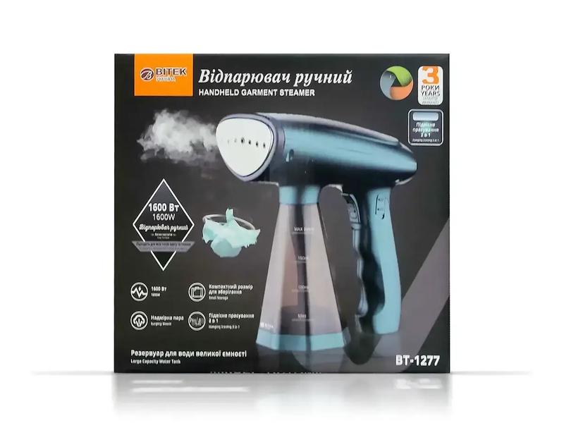 Відпарювач ручний зі складною ручкою 1600вт 200мл bitek bt-1277g drak green/ 7044 (12)