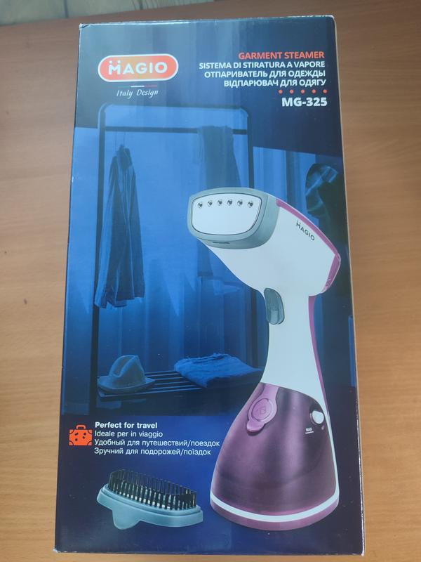 Это отпариватель для одежды Magio модель MG-325. Мощность: устройство имеет мощность 1100 Вт. Особенности: портативная модель, отлично подходит для путешествий. Функции: разглаживает складки, дезинфицирует и помогает убрать неприятные запахи с тканей. Цена: ориентировочная стоимость составляет около 1300 грн.