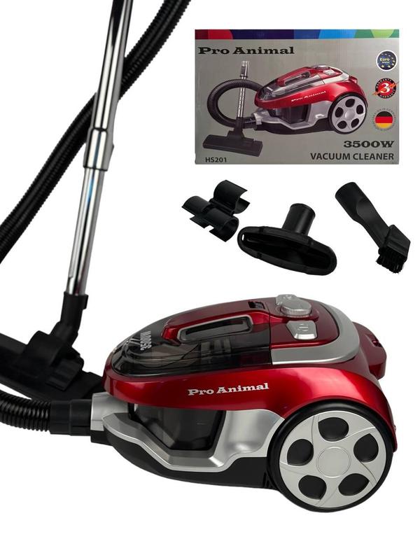 Контейнерний пилосос PRO ANIMAL. Потужність – 3500 Вт. Об'єм - 2.5 л. Довжина труби - 100 см. Довжина шнура - 4,0 м. Упаковка – коробка.