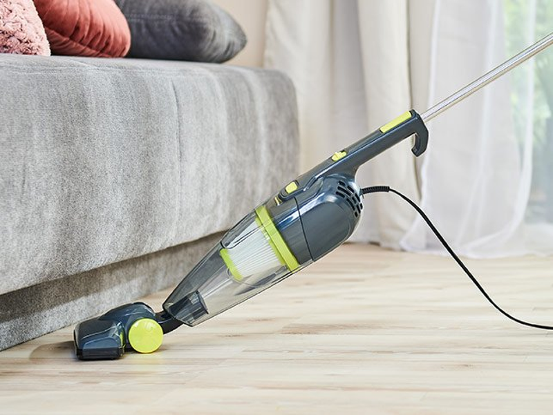 Вертикальный пылесос 3 в 1 - это усовершенствованный прибор, который поможет быстро справиться с уборкой в доме. С ним вы без особых усилий очистите ковры и ковровые покрытия, мебель, деревянные полы, плитку и другие поверхности. Работает от сети. Компактный и маневренный Благодаря небольшим размерам пылесос очень удобен в использовании и хранении. Он не занимает много места и экономит свободное пространство. Для обладателей маленьких квартир этот прибор станет настоящей находкой. Фильтр высокой эффективности Вертикальный пылесос оборудован специальным фильтром с технологией фильтрации HEPA (High Efficiency Particulate Arrestance - высокоэффективное удержание частиц). Такой фильтр задерживает частицы любого размера - он помогает эффективно улавливать даже микрочастицы пыли, грязи и различных аллергенов. Встроенный контейнер позволит использовать пылесос без дополнительных мешков для мусора. Пылесборник с фильтром очень прост в уходе: различные загрязнения легко убрать, достаточно просто промыть контейнер. Вертикальный и ручной режим Вертикальный пылесос поможет убрать любой уголок в вашем доме. Стандартное положение пылесоса с основной насадкой обеспечит мощное всасывание грязи. Вы с легкостью уберете крошки на кухне, волосы с коврика в ванной, пыль под диваном и многое другое. Используя дополнительные насадки, вы сможете пропылесосить все труднодоступные места. Теперь, чтобы сделать экспресс-уборку, не придется возиться с целым пылесосом! Отключите длинную ручку - и пылесос превратится в компактный ручной девайс, который поможет очистить книжные полки от пыли, мусор со стола, и даже пропылесосить мебель. Убирайте хоть каждый день, совершенно не уставая! Характеристики: Материал: пластик, металл; Размеры (ДхШхВ): Основной корпус - 48х10х12 см; Маневренная щетка - 20,5х24х5,5 см; Насадка-щетка - 12,5х6,5х6 см; Щелевая насадка - 12,5х3,5х3,5 см; Вместимость пылесборника: 600 мл; Работает от сети; Длина шнура: 5 м; Длина ручки: 63 см; Мощность: 600 Вт; Цвет: серый с зеленым; Вес: 1,73 кг. Дополнительные характеристики: Производитель: Китай; Упаковка: картонная коробка; Размеры в упаковке (ДхШхВ): 59х26х12 см; Вес в упаковке: 2,35 кг. Комплектация: основной корпус, емкость с фильтром, маневренная щетка, металлическая трубка, 2 насадки (щетка, щелевая насадка), инструкция на английском языке.