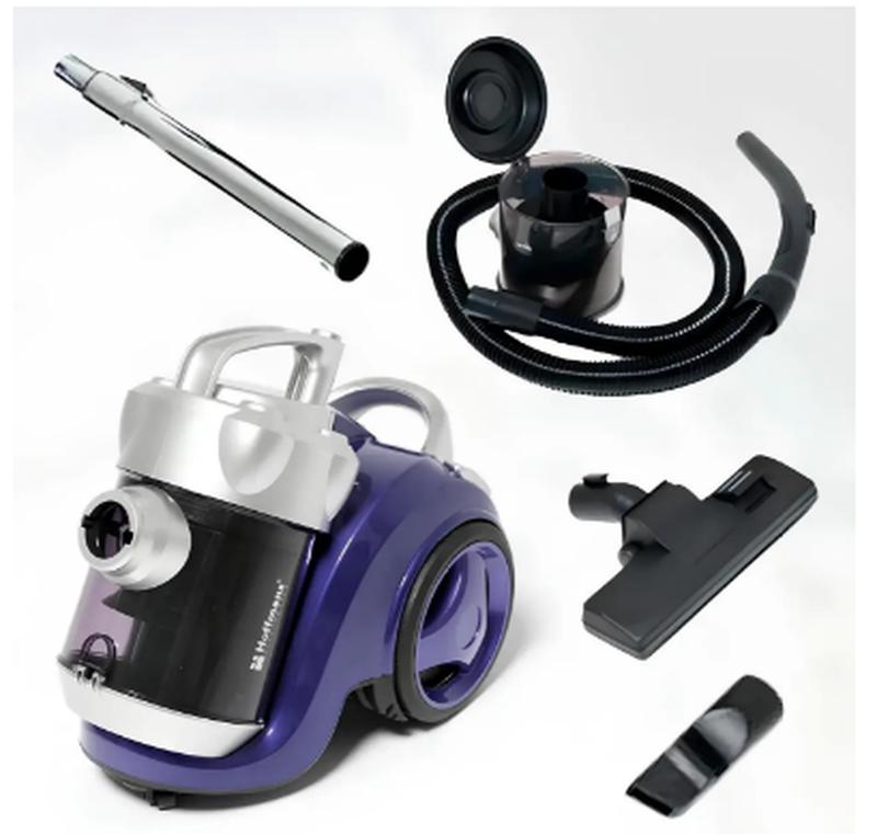 Компактный и маневренный– идеально для небольших квартир Универсальная насадка 2-в-1: щелевая насадка и щетка для мебели всегда под рукой Мощное всасывание для эффективного уборки любых поверхностей HEPA-фильтр задерживает мельчайшие частицы пыли и аллергены. Легко очищаемый и моющий контейнер для сборки пилы Больше затрат на одноразовые мешки! Описание: Пылесос без мешка Hoffmans HM-8801 – это универсальное решение для поддержания чистоты в вашем доме. Он легко справится с уборкой пола, мебели, мягких поверхностей и даже труднодоступных мест. Благодаря компактному дизайну, он не займет много места при хранении, что особенно важно для небольших квартир. Насадка 2-в-1, объединяющая щелевую насадку и щетку для мебели, позволяет быстро переключаться между разными типами уборки. Высокая мощность всасывания обеспечивает эффективное удаление даже самых стойких загрязнений из ковров, полов и мебели. Вам не придется тратить много часов и усилий, чтобы добиться идеальной чистоты. А благодаря HEPA-фильтру, пылесос задерживает до 99,97% частиц размером до 0,3 микрона, включая пыльцу, аллергены и споры плесени. Это гарантирует не только чистоту, но и свежий, здоровый воздух в вашем доме. Характеристики: Тип: Пылесос с контейнером / Пылесос безмешковый Тип уборки: Сухая Количество насадок: 2 шт. Особенности: Универсальная насадка для щелей и мебели Мощность всасывания: 600 Вт. Максимальная мощность: 1800 Вт Тип пылесборника: Контейнер Фильтр: НЕРА (циклонный) Трубка: Телескопическая Объем пылесборника: 3 л. Питание: От сети 220В Длина кабеля: 3 м Автосмотка кабеля: Да Материал корпуса: Пластик Размер: 34×32×22 см Цвет: Синий Комплектация: Пылесос Hoffmans HM-8801 Контейнер для пилы Фильтр Шланг Телескопическая трубка Насадки – 2 шт.