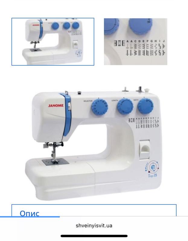 Швейна машинка Janome Top-18 - багатофункціональна. Фактично нова. Купила новесеньку, хотіла навчитись шити. Вистачило терпіння на дві спроби. Тому стан ідеальний. підійде як для початківців рукодільниць, так і для професіоналів. Допомагає у вирішенні наступних завдань: ремонт одягу, пошиття або декорування різних речей. Основна її перевага - велика кількість функціональних можливостей. Виробник запропонував на вибір 7 робочих, 7 еластичних і 6 декоративних строчок. Janome Top-18 працює з будь-якими видами тканин, починаючи з легкого шифону та закінчуючи грубої джинсою. Оснащена класичним човником вертикального типу і Нитковтягувач