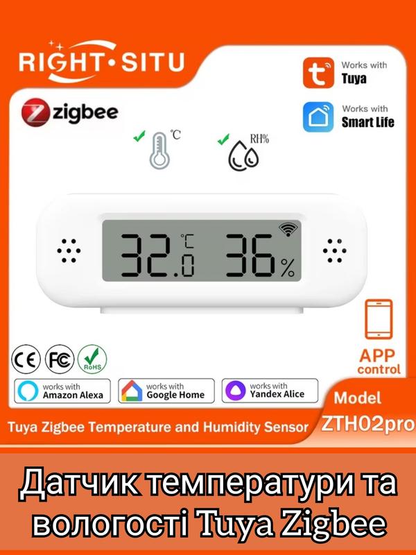 Smart life tuya zigbee термостат датчик гігрометра tuya alexa google датчик вологості та т...