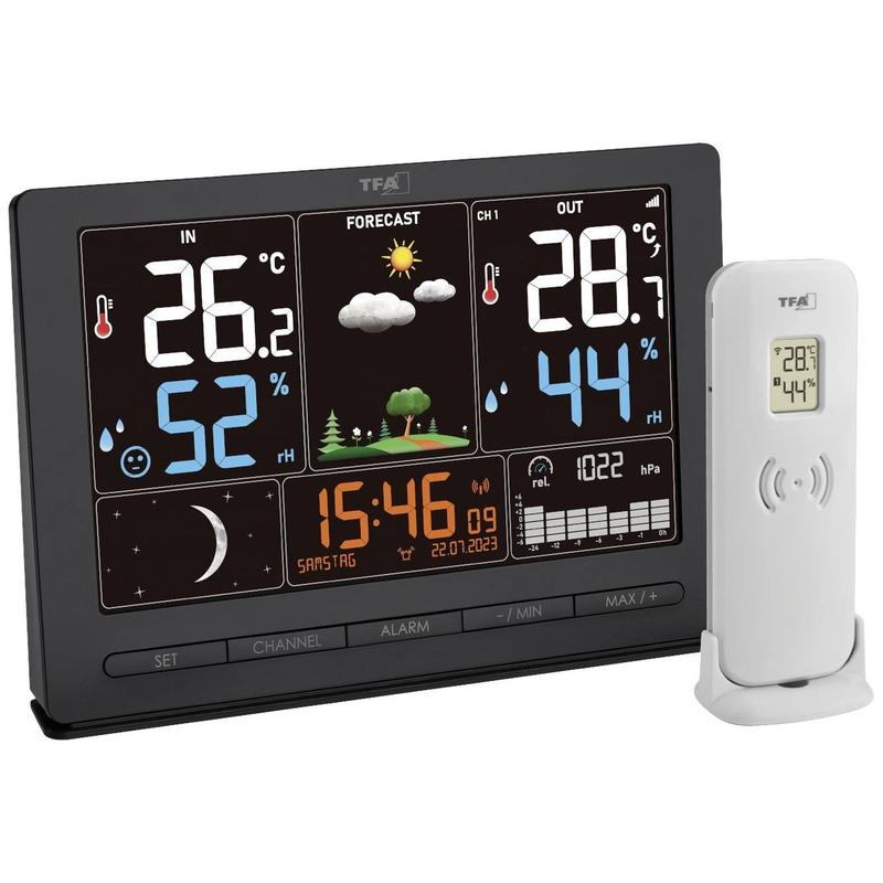 Для этой метеостанции всегда сезон, потому что, что бы ни случилось, SEASON 2 подготовит вас ко всем (погодным) непредвиденным обстоятельствам. Как и в предыдущей модели, символ погоды визуально изображен в виде лесной поляны, которая меняется в зависимости от времени года: Летом цветут цветы; на зиму лиственное дерево сбрасывает листья. Прогноз основан на измеренных изменениях атмосферного давления. История давления воздуха за последние 24 часа отображается графически, чтобы вы могли легко оценить тенденцию. Беспроводной наружный датчик собирает данные измерений температуры и влажности непосредственно в вашем палисаднике и может даже активно предупреждать вас о серьезных изменениях погоды в будущем благодаря своей функции сигнализации. В дополнение к внутреннему климату с приятным смайликом вы также можете считывать фазу луны и радиоуправляемое время с точностью до секунды, включая день недели и дату. Яркость дисплея можно регулировать на четырех разных уровнях. Благодаря своему элегантному внешнему виду беспроводная метеостанция идеально вписывается между фотографиями в вашей гостиной или на прикроватной тумбочке в спальне. Там ее будильник с функцией повтора действительно вступает в свои права, и вы начинаете день с правильного прогноза погоды. Солнцезащитные очки или зонтик? Одного взгляда на метеостанцию достаточно, чтобы узнать об этом. ФУНКЦИИ: - Беспроводной датчик температуры и влажности наружного воздуха (433 МГц), дальность действия до 100 м (на открытой местности) - Температура и влажность в помещении с уровнем комфорта - Прогноз с красочным пейзажным изображением, изображающим погоду (меняется в зависимости от сезона) - Относительное атмосферное давление с гистограммой за последние 24 часа - Максимальные и минимальные значения температуры, влажности и атмосферного давления с указанием времени и даты записи - Индикаторы трендов и сигнализация температуры и влажности - Фаза луны - Радиоуправляемые часы с полной датой и днем недели (6 языков) - Будильник с функцией повтора - Возможность ручной настройки и коррекция часового пояса - Цветной дисплей с 4 уровнями яркости и функцией автоматического затемнения (при подключении к сети) - Установка на стену или настольную подставку - Опционально: Возможность расширения до 3 датчиков температуры и влажности (продаются отдельно), а также для климат-контроля удаленных помещений, например, детской комнаты, винного погреба и т. д. ХАРАКТЕРИСТИКИ: - Диапазон измерения температуры наружного воздуха: -40…+60 °C - Диапазон измерения температуры в помещении: 0…+50 °C - Диапазон измерения влажности: 10...99 % - Коррекция часового пояса: +12/-12 часов - Максимальная дальность передачи данных: 100 м - Максимальное количество датчиков: 3 - Датчик входит в комплект поставки: 30324902 - Частота передачи радиосигнала: 433 МГц - Часы: Радиоуправляемые - Материал корпуса: Пластик - Цвет корпуса: Черный - Способ установки: Настенный или настольный - Источник питания: Батарейки, адаптер питания (вилка европейского стандарта) - Тип батареек: 3 x AA 1.5 В (базовая станция), 2 x AA 1.5 В (датчик) - Батарейки в комплекте: Нет - Размеры: 13.3 x 19.4 x 3.1 (4.7) см - Вес: 0.345 кг КОМПЛЕКТАЦИЯ: - Метеостанция - Датчик - Адаптер питания - Инструкция по эксплуатации - Гарантийный талон ЗНАК КАЧЕСТВА TFA: - Продукция от TFA убеждает в функциональности и дизайне.