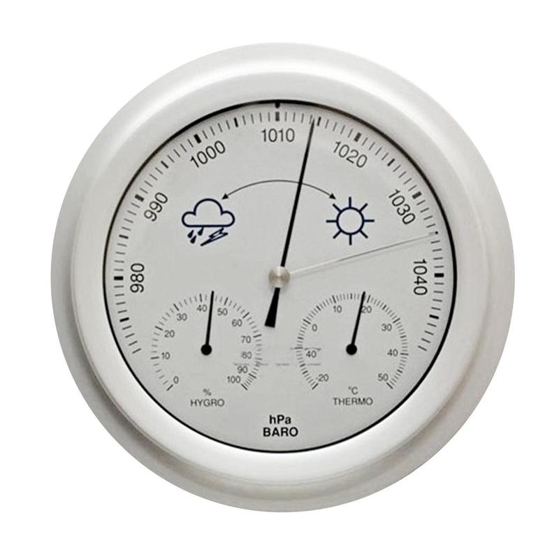 Настенная метеостанция Moller 203990 Aluminium состоит из барометра с большим циферблатом, гигрометра и термометра, объединенных в алюминиевом корпусе. Каждый из приборов имеет свою шкалу на общем большом циферблате. Шлифованный алюминиевый корпус придает метеостанции презентабельный внешний вид. Качество и надежность продукции Moller подкреплены пятилетней гарантией. Функции: Прогноз погоды: - Прогноз погоды на 8-12 часов (циферблат отображает погоду, которая прогнозируемо установится через 8-12 часов) - Символьный прогноз погоды. На циферблате нанесены три символа (ясно, переменная облачность, дождь) - Прогноз погоды определяется по направлению движения стрелки барометра относительно маркерной стрелки Атмосферное давление: - Единицы измерения: гПа (Гектопаскали). - Диапазон измерения атмосферного давления : от 973 гПа до 1053 гПа - Разрешение измерения: 1 гПа - Точность измерения: +/- 5 гПа - Отображение тенденции атмосферного давления (Отклонение стрелки влево от маркера - давление падает / Отклонение стрелки вправо от маркера - давление растет) - Возможность калибровки Температура в помещении: - Единицы измерения: ºС - Диапазон измерения: от -25°C до +65°C - Разрешение измерения: 1°C - Точность измерения: +/- 2C° Влажность в помещении: - Единицы измерения: % RH - Диапазон измерения: от 0% до 100% - Разрешение измерения: 1% - Точность измерения: +/-6% Характеристики и комплектация: Циферблат: - Размер циферблата: 160x160 мм; - Цвет циферблата: белый; - Цвет оправы циферблата: под серебо; Особенности конструкции: - Материал корпуса: алюминий - Установка: на стене - Цвет корпуса: Aluminium (серебристый) Комплектация: - Метеостанция - Ключ для калибровки - Дюбель для крепления на стену - Инструкция на украинском языке Размеры и вес: - Размеры метеостанции без упаковки, мм: 227х227х50 - Размеры в упаковке, мм: 235х235х75 - Вес метеостанции без упаковки, кг: 0.375 - Вес в упаковке, кг: 0.500 Срок гарантии: 5 лет Производитель: Moller (Germany)