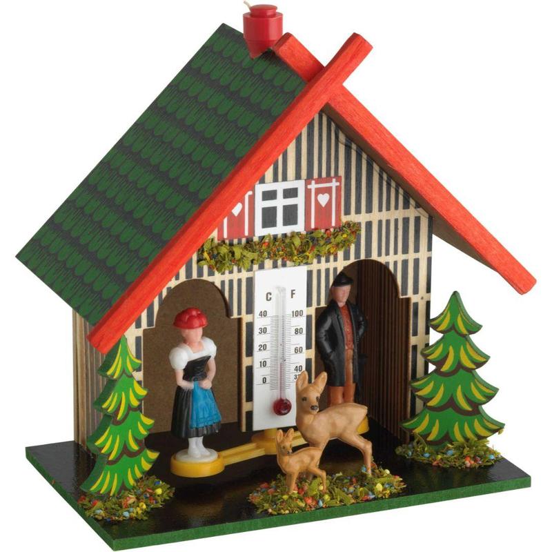 Чистая ностальгия! Этот маленький погодный домик, как и во времена прабабушки, является классическим гигрометром. Синтетические волосы реагируют на влажность и соответственно сокращаются или расширяются. В сухую погоду из домика появляется женщина; в сырую погоду мужчина подходит к двери. Термометр также измеряет температуру. Погодный дом полностью изготовлен в Германии. ФУНКЦИИ: - Сделано в Германии - Ностальгический погодный дом из дерева - С "солнечной женщиной" и "дождевым мужчиной" - Термометр в градусах Цельсия и Фаренгейта - Дерево с пластиковыми фигурками - С термометром ЗНАК КАЧЕСТВА TFA: Основным элементом TFA является собственное производство механических погодных инструментов. Мы создаем продукцию, соответствующую этикетке «Сделано в Германии», с использованием самых современных технологий производства и традиционного ремесленного производства. Продукция от TFA убеждает в функциональности и дизайне. QUALITY-PRODUCT by: TFA Dostmann GmbH & Co.KG Germany