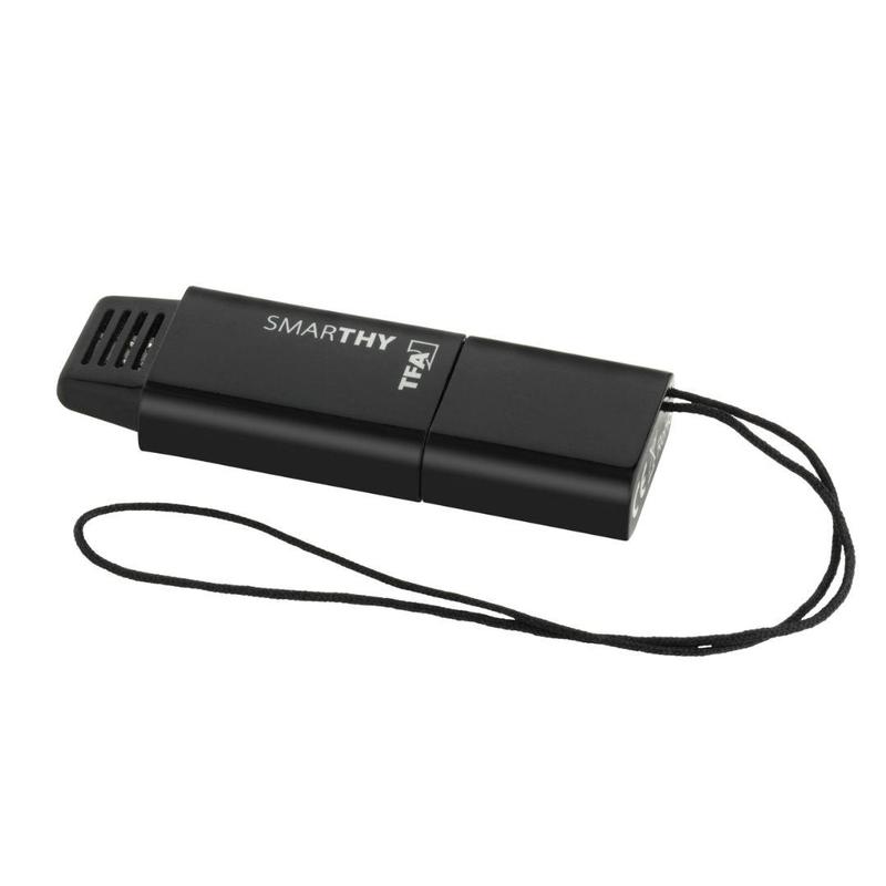 SMARTHY представляет собой портативный инновационный аксессуар (гаджет) для смартфона для измерения температуры и влажности воздуха. С SMARTHY Вы можете просматривать и записывать комнатные и /или уличные значения температуры и влажности воздуха. Дополнительно отображаются максимальные и минимальные показания, а также активированные предельные значения сигналов тревоги. Функция «Logger/Регистратор» позволяет записывать серию измерений в определенном месте. К записи можно добавить описание и фото. Изменения в измерениях могут отображаться в виде диаграммы. С полезной функцией «Photo/Фото» Вы можете делать свои фотографии прямо с текущей температурой и влажностью и легко делиться своими измерениями по электронной почте, Facebook или Twitter. Термогигрометр SMARTHY устанавливается в гнездо для подключения головных телефонов смартфона. Приложение для гаджета загружается на смартфон бесплатно.