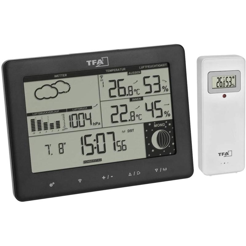 С беспроводной метеостанцией ELEMENTS вы защищены от погодных сюрпризов. Узнавайте на четком дисплее, будет ли в приближающийся день солнце или дождь, насколько высоки температура и влажность на улице, и воспользуйтесь многочисленными дополнительными функциями. Метеостанция оснащена радиопередатчиком, который устанавливается в защищенном месте на открытом воздухе и передает данные о внешних параметрах на главную станцию в вашем доме. Здесь вы также можете легко прочитать давление воздуха, микроклимат в помещении, а также все максимальные и минимальные значения. Время и дата с указанием полного дня недели обновляются по радио. Встроенный будильник с двумя разными часами будильника и функцией повтора разбудит вас вовремя. Текущая фаза луны отображается в виде символа на стилизованном звездном небе. Подсветка дисплея загорается при нажатии кнопки. Можно подключить два дополнительных датчика для контроля температуры и влажности, например, для детской комнаты, подвала или гаража. ФУНКЦИИ: - Беспроводная передача температуры и влажности наружного воздуха с возможностью расширения до 3 датчиков (макс. 100 м) - Индикация температуры и влажности в помещении - Сигнализация замерзания - Прогноз погоды в виде символов - Атмосферное давление с гистограммой за последние 12 часов - Макс.-мин.-функция, стрелка тренда для температуры, влажности и атмосферного давления - Радиоуправляемые часы с датой и днем недели - Два времени будильника и функция повтора - Фаза луны - Сенсорные кнопки - Подсветка - Четкий дисплей ХАРАКТЕРИСТИКИ: - Диапазон измерения температуры наружного воздуха: -50...+70 °C - Диапазон измерения влажности: 1…99 % - Дальность передачи данных: 100 м - Максимальное количество датчиков: 3 - Датчик входит в комплект поставки: 30324702 - Частота передачи данных: 433 МГц - Диапазон измерения температуры в помещении: -10...+50 °C - Материал корпуса: Пластик - Способ установки: Настенный или настольный - Питание: Батарейки - Тип батареек: 3 x AAA 1.5 В (базовая станция), 2 x AAA 1.5 В (датчик) - Батарейки в комплекте: Нет - Размеры: 11.7 x 12.3 x 5.2 см - Вес: 0.222 кг КОМПЛЕКТАЦИЯ: - Базовая станция - Термо-гигро-датчик - Инструкция по эксплуатации ЗНАК КАЧЕСТВА TFA: - Зарегистрированный TFA патент на дизайн. - Продукция от TFA убеждает в функциональности и дизайне. QUALITY-PRODUCT by: - TFA Dostmann GmbH & Co.KG - Germany