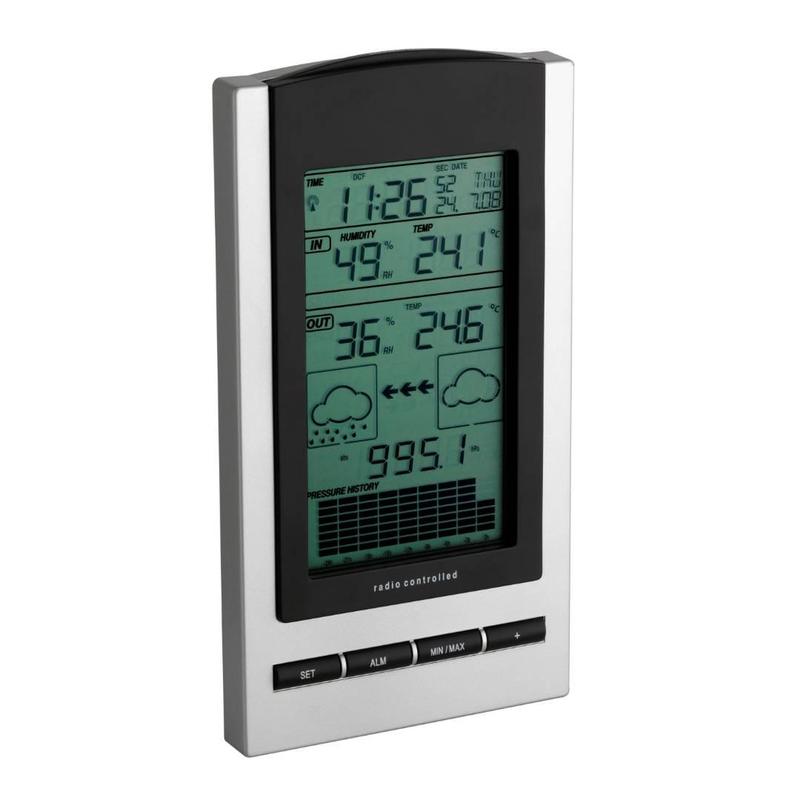 Как сегодня местная погода? Достаточно взглянуть на беспроводную метеостанцию «GAIA», и вы всегда будете в курсе событий. Четкий дисплей показывает много деталей о местных погодных условиях. Температура и влажность наружного воздуха определяются отдельным беспроводным передатчиком на месте. Кроме того, встроенный электронный барометр измеряет давление воздуха и отображает символ текущей погоды; другой символ дает прогноз погоды на основе изменений атмосферного давления. Текущее давление воздуха отображается в виде абсолютного и относительного значения, на гистограмме можно наблюдать историю последних 24 часов, что позволяет получить более точное представление о погоде. Для контроля климата в помещении отображаются температура и влажность. С целенаправленным отоплением и вентиляцией вы создаете приятную и здоровую среду обитания и даже экономите на расходах на отопление. Метеостанция предлагает множество дополнительных функций и информации. Вы можете включить штормовое предупреждение, установить пределы тревоги для многих параметров, получить максимальные и минимальные значения со временем записи и рассчитать точку росы. Текущее время и дата принимаются через радиосигнал DCF77. Будильник всегда будит вас в нужное время. Четкий дисплей хорошо читается даже в темноте с подсветкой. ФУНКЦИИ: - Беспроводная передача наружной температуры и влажности через передатчик - Внутренняя температура и влажность - Максимальная суточная и мин. значения со временем и датой записи - Барометрические погодные символы для фактической погоды и прогноза - Тенденция атмосферного давления, абсолютное и относительное атмосферное давление, гистограмма с отображением атмосферного давления за последние 24 часа - Программируемые функции сигнализации для определенных погодных условий, таких как температурный сигнал, штормовое предупреждение - Точка росы - Радиоуправляемые часы с будильником с функцией повтора и датой - Подсветка ХАРАКТЕРИСТИКИ: - Комплектация: Базовая станция, термо-гигро датчик 303166, инструкция по эксплуатации - Диапазон измерения внешней температуры: -40…+65 °C - Диапазон измерения комнатной температуры: 0…+60 °C - Разрешение: 0.1 °C - Диапазон измерения внешней влажности: 20…95 % - Диапазон измерения комнатной влажности: 1…99 % - Разрешение: 1 % - Диапазон измерения атмосферного давления: 919…1080 hPa - Часы: С радиоконтролем (DCF77 - сигнал) - Дальность передачи данных от датчика: 100 м на открытой местности - Частота передачи данных: 433 МГц - Внешний датчик: арт. 303166 - Максимальное количество внешних датчиков: 1 - Материал: Пластик - Цвет: Серебристый - Установка: Настенный или настольный (базовая станция), настенный или настольный (внешний датчик) - Питание: Батарейки - Тип батареек: 3 x 1.5 В AА (базовая станция), 2 x 1.5 В AАА (датчик) - Батарейки в комплекте: Нет - Размеры: 18.7 x 10.1 x 3.3 (7.5) см - Вес: 0.251 кг КОМПЛЕКТАЦИЯ: - Базовая станция - Термо-гигро датчик 303166 - Инструкция по эксплуатации КОМНАТНЫЙ КЛИМАТ ВАЖЕН ДЛЯ ЗДОРОВЬЯ: - Регулирование комнатной температуры и влажности с помощью активного обогревания и проветривания поможет вам в достижении комфортной и здоровой бытовой среды и даже может сэкономить ваши расходы на отопление. Идеальная комнатная температура находится в диапазоне между 18...22 °C, а идеальная комнатная относительная влажность находится в диапаз