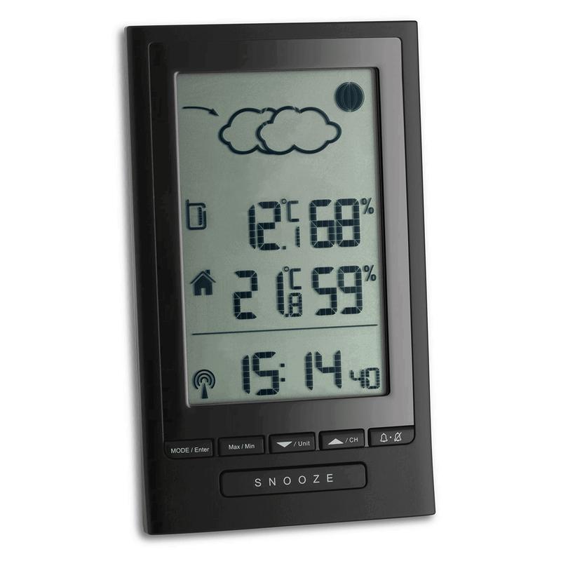 Метеостанция TFA (351122) Modus Plus – это беспроводная метеостанция в черном корпусе с большим информационным дисплеем. Метеостанция TFA Modus Plus на дисплее отображает символ прогноза погоды на 12-24 часа вперед, тенденцию изменения атмосферного давления, температуру и влажность воздуха внутри и снаружи помещения, текущее время, текущую фазу Луны. ⠀ TFA Modus Plus комплектуется одним внешним датчиком термометром-гигрометром. Датчик- беспроводной, устанавливается на улице или в другом помещении (комнате, теплице…) на расстоянии до 75 метров (в условиях открытого пространства) от основного прибора. Датчик измеряет температуру и влажность воздуха и передает значение на дисплей по радиочастоте 868 МГц. ⠀ К данной погодной станции TFA Modus Plus можно подключать одновременно три дистанционных датчика термометра- гигрометра. ⠀ Комплектация TFA (351122) Modus Plus: 1. Основной блок TFA Modus Plus (351122). 2. Дистанционный датчик термометр-гигрометр TFA (303196). 3. Инструкция на русском языке. 4. Гарантийный талон. ⠀ Метеостанция TFA (351122) Modus Plus – это отличный подарок вам и вашим друзьям, близким.
