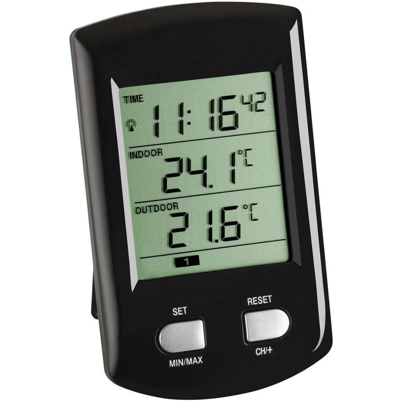 Всегда в курсе температуры - с беспроводным термометром RATIO от TFA. Отдельный беспроводной передатчик определяет температуру наружного воздуха в вашей местности; внутренний датчик измеряет температуру в помещении. Регулирование температуры в помещении является важным фактором для создания комфортной и здоровой среды обитания и помогает экономить энергию. Даже снижение температуры воздуха на 1 градус может сэкономить до 6% затрат на отопление. С температурой наружного воздуха вы получаете достоверную и важную информацию для вашего дома, сада, отдыха и работы. Кроме того, устройство имеет память для максимальных и минимальных значений и дисплей для отображения времени. Можно подключить еще два датчика температуры, что позволяет контролировать другие помещения, например, в детской, спальне, погребе или гараже. ФУНКЦИИ: - Беспроводная передача температуры наружного воздуха через передатчик (макс. 3) - Индикация температуры в помещении - Макс.-мин. значения - Часы с радиоконтролем времени и будильник - Возможность расширения до 3 передатчиков ХАРАКТЕРИСТИКИ: - Комплектация: Базовая станция, термодатчик 303163, инструкция по эксплуатации - Диапазон измерения внешней температуры: -40…+65 °C - Диапазон измерения комнатной температуры: 0…+60 °C - Разрешение: 0.1 °C - Точность: ±1 °C - Дальность передачи данных от датчика: 100 м на открытой местности - Частота передачи данных: 433 МГц - Внешний датчик: арт. 303163 - Максимальное количество внешних датчиков: 3 - Часы: С радиоконтролем (DCF77 - сигнал) - Материал: Пластик - Цвет: Черный - Установка: Настенный или отдельно стоящий (базовая станция), настенный или отдельно стоящий (внешний датчик) - Питание: Батарейки - Тип батареек: 2 x 1.5 В AА (базовая станция), 2 x 1.5 В AАА (датчик) - Батарейки в комплекте: Нет - Размеры: 11.3 x 6.8 x 2.9 (7.8) см - Вес: 0.091 кг КОМПЛЕКТАЦИЯ: - Базовая станция - Термодатчик 303163 - Инструкция по эксплуатации ЗНАК КАЧЕСТВА TFA: - Продукция от TFA убеждает в функциональности и дизайне. QUALITY-PRODUCT by: - TFA Dostmann GmbH & Co.KG - Germany