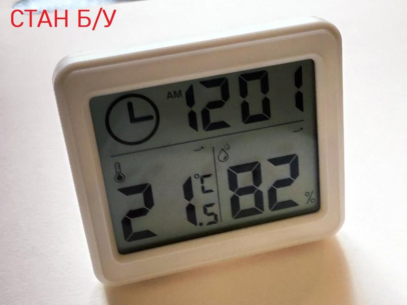СТАН Б/У Термогігрометр Digital Indoor Hygrometer це цифровий термометр-гігрометр для домашнього використання з функцією відображення часу . Функціонал: точний термометр фіксує високі і низькі температури в межах -10 °C ∼ + 70 °C; чутливий до зовнішньої середовищі гігрометр показує зміни вологості повітря в діапазоні 20% ∼ 90% RH годинники відображають час у форматі 12 годин Дизайн: великий РК-дисплей повідомляє точну температуру час і вологість в реальному часі. Кімнатний гігрометр обладнаний кронштейном для столу, на задній стінці є липучка для зручного розміщення на будь-якій поверхні в будинку. Працює на одній батарейці кнопкового типу. Сфера використання: термогігрометр забезпечує належний контроль температури і вологості в будинку, а також показує точний час. Може бути використаний як термометр для холодильника, морозильної камери, термометр для рептилій, гігрометр х'юмідору і багато іншого.