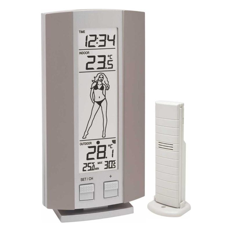 Достаточно оригинальная метеостанция Technoline WS9750 IT станет отличным и полезным подарком, в том числе и себе самому. Центральное место на дисплее занимает изображение погодной девочки , которая меняет свое одеяние в зависимости от уличной температуры, тем самым подсказывая, как сегодня стоит одеться, выходя на улицу. Температурные показатели метеостанция считывает с беспроводного радиодатчика температуры. Отличительной особенностью является технология передачи данных, благодаря которой удалось достичь более стойкого сигнала, увеличения радиуса действия, а главное беспрерывной передачи данных, не увеличивая при этом энергопотребление. При необходимости можно приобрести и подключить еще два дополнительніх датчика. Данные по минимальной и максимальной внешней температуре отображаются на дисплее в постоянном режиме, таким образом, нет необходимости искать нужную кнопку для вывода этих данных на дисплей. Функции Часы - Механизм: электронный, цифровой - Формат времени: 12/24 ч - Точность хода часов: +/- 30 сек./мес. Температура в помещении - Единицы измерения: ºС/° F - Диапазон измерения: от -9.9°C до +59.9°C (от +14.1°F до +139.8°F) - Разрешение измерения: 0.1°C - Точность измерения: +/- 1C° - Обновление показаний каждые 15 сек. Внешняя температура - Единицы измерения: ºС/° F - Диапазон измерения: от -39.9°C до +59.9°C (от -39.8°F до +139.8°F) - Разрешение измерения: 0.1°C - Точность измерения: +/- 1C° - Обновление показаний каждые 4 сек. - Регистрация и отображение минимальных и максимальных значений температуры - Возможность отображения показаний температуры от 3-х внешних датчиков - Визуализация температурных показателей в виде иконок - Погодная девочка. В зависимости от температуры метеостанция отображает одну из иконок с изображением девочки одетой по погоде. Передача данных от внешнего датчика температуры - Технология передачи данных: IT+ (данные передаются каждые 4 секунды, при этом уровень энергопотребления значительно снижен) - Частота передачи данных: 868 MHz - Дальность передачи данных: до 100 м. прямой видимости - Возможность приема и отображения температуры от 3-х внешних датчиков (датчики обязательно должны быть с переключением каналов, два дополнительных датчика приобретаются отдельно). Особенности конструкции - Все кнопки управления расположены на лицевой панели - Индикатор заряда батареи - Материал корпуса: пластик - Установка: на столе или на стене. Характеристики Дисплей - Размер циферблата: 110x30 мм - Цвет дисплея: монохромный. Питание - Метеостанция: батарейки AА (LR06) 1.5V х 2 шт. - Датчик: батарейки AА (LR06) 1.5V х 2 шт. Комплектация - Метеостанция - Подставка под метеостанцию - Беспроводной датчик внешней температуры TX29IT - Батарейки AA (R06) 1.5V х 4 шт. - Набор для крепления датчика на стену - Инструкция на украинском языке. Размеры и вес - Размеры метеостанции без упаковки, мм: 151х80х24 - Размеры датчика без упаковки, мм: 129х38х21 - Размеры в упаковке, мм: 180х95х63 - Вес метеостанции без упаковки, кг: 0.100 - Вес датчика без упаковки, кг: 0.04 - Вес в упаковке, кг: 0.235 Срок гарантии: 1 год Производитель: Technoline (Germany)
