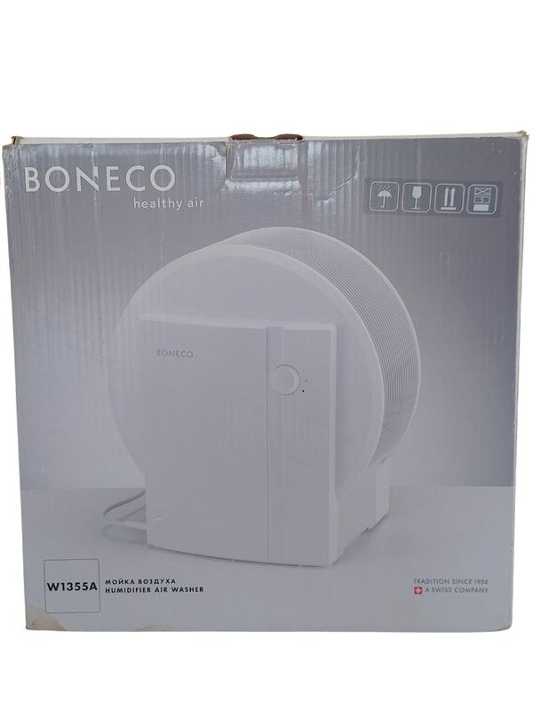 Очистить воздух от пыли, бактерий и микробов поможет мойка воздуха Boneco W1355A. Прибор также естественным образом увлажняет воздух, отличается тихой работой и экономичностью. Здесь предусмотрено 2 режима мощности (стандартный и ночной) и возможность регулировки интенсивности испарения. Есть емкий бак для воды объемом 5 л, а при низком уровне воды в резервуаре прибор отключается автоматически. Все элементы конструкции выполнены из высококачественного пластика, легко разбираются и их можно мыть в посудомоечной машине. Boneco 1355A позволяет легко и эффективно очистить воздух в помещении площадью до 50 кв. В рабочем состоянии. Есть небольшая трещина на резервуаре (последнее фото), поврежденная при переезде. В работе было недолгое время в родной коробке, инструкция. Прошла регламентную очистку в сервисном центре.
