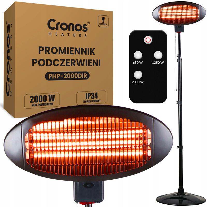 Oбогреватель телескопический уличный cronos 2000w с пультом управления, 3 уровня мощности