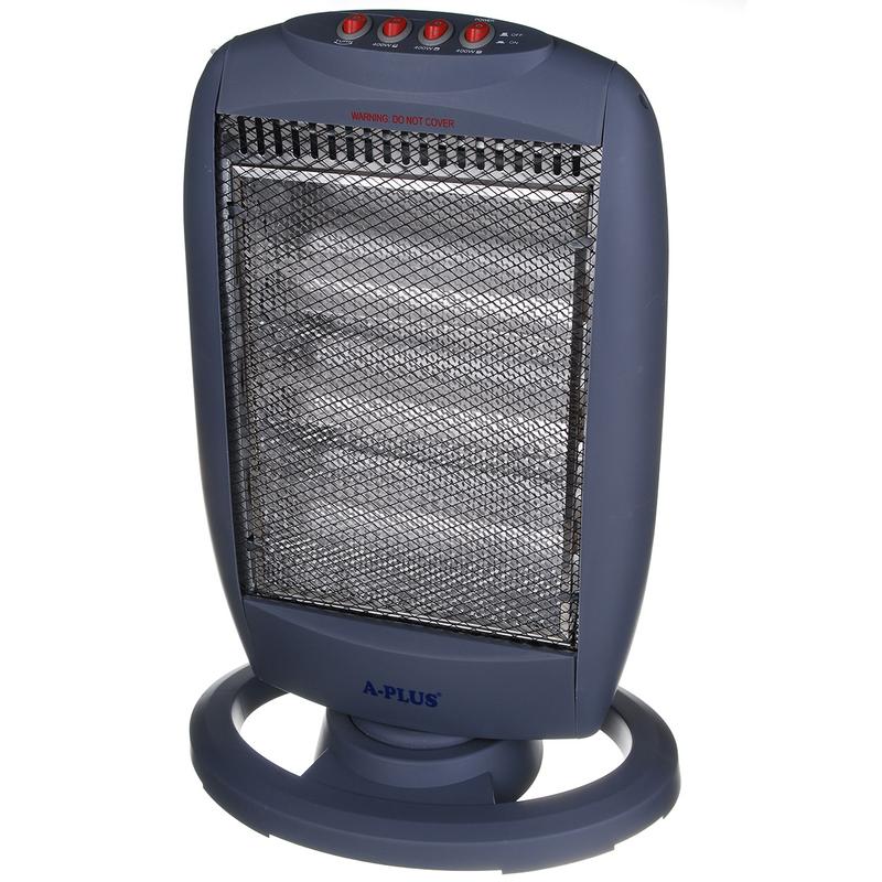 Галогенный обогреватель A-PLUS (1990) Инфракрасный галогеновый обогреватель 1990― прибор направленного действия, то есть он не нагревает воздух в помещении, а только предметы, которые расположены в радиусе его действия. Обогреватель разделен тремя секциями (3 лампы), которые работают как синхронно, так и отдельно друг от друга. Конструкция специально сделана так, что бы Вы сами смогли выбирать режим обогрева и энергопотребления. На корпусе прибор имеет 4 кнопки: первые 3 кнопки регулируют режим работы; последняя кнопка ― включение/выключение прибора. Корпус обогревателя выполнен из качественного плотного пластика, который убережет прибор от царапин, ударов, при падении прибор автоматически прекращает свою работу. Характеристика: Галогенный обогреватель A-PLUS (1990) - Тип: обогреватель; - Вид: галогеновый; - Материал: пластик; - Мощность: 400, 800, 1200 вт.; - Автоотключение при падении, перепаде электросети; - Работает от сети 220V; - Цвет: серый. Комплектация: Галогенный обогреватель A-PLUS (1990) - Обогреватель – 1 шт.; - Упаковка: заводская коробка.