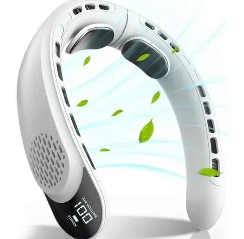 Вентилятор переносной 4-х турбинный на шею type c, 3 скорости 4000 Ма с дисплеем 35 ДБ, гнущийся корпус 6 ч.