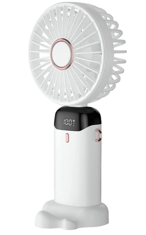 Міні ручний вентилятор з аккумулятором та дісплеєм, 5 швидкостей,type-c, білий