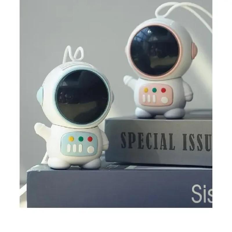 Вентилятор в форме космонавта, заряжаемый через USB, можно носить на шее Переносной вентилятор для шеи, подзаряжаемый через USB, мини-вентилятор с цифровым дисплеем, многофункциональный, с подвесной лентой, компактный дизайн для охлаждения в дороге.