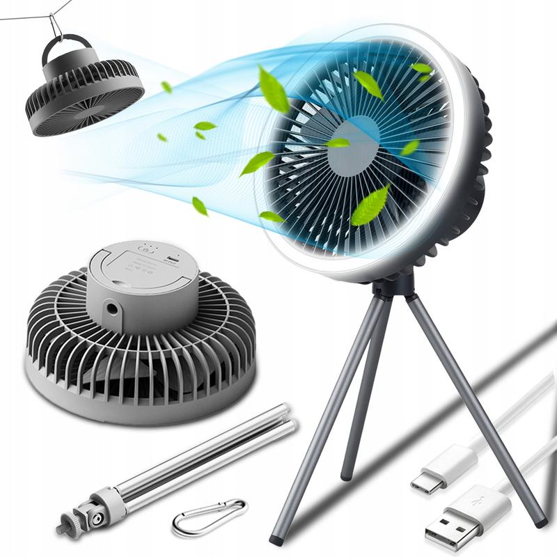 Вентилятор на аккумулятор 10000mAh, LED подсветка до 25 часов работы, 3 скорости Хотите почувствовать дуновение прохладного воздуха в теплый день, где бы вы ни находились? Портативный вентилятор освежит вас в любое время - почти морской бриз! Вентилятор оснащен функцией светодиодной подсветки. Что добавляет настроения и функциональности в темное время суток. Благодаря компактным размерам и телескопической подставке вентилятор легко переносить и размещать в любом месте. Технические характеристики: Мощность: 5 Вт Емкость аккумулятора: 10000 мАч Срок службы батареи: около 25 часов на 1-й передаче, около 13 часов на 2-й передаче, около 7,5 часов на 3-й передаче. Время зарядки: около 5,5 часов Размеры: Вентилятор: 18 см x 18 см x 11,5 см (7,09 дюйма x 7,09 дюйма x 4,53 дюйма) Со штативом: 19,2 см x 18,3 см x 34,2 см (7,56 дюйма x 7,20 дюйма x 13,46 дюйма) Функциональность: Переносной вентилятор -- настоящая находка среди любителей отдыха на открытом воздухе. Благодаря трем различным уровням скорости вы можете регулировать поток воздуха в соответствии со своими потребностями, наслаждаясь приятным глотком свежего воздуха в течение многих часов. Вентилятор легкий и компактный, что делает его чрезвычайно удобным для транспортировки и хранения. Встроенный аккумулятор емкостью 10000 мАч обеспечивает длительное время работы, поэтому вам не придется беспокоиться о частой зарядке. Полностью заряженный вентилятор работает до 25 часов на самой низкой скорости. Быстрая зарядка, занимающая около 5,5 часов, позволяет быстро восстановить полную функциональность устройства. ▶️ Ваш попутчик Веер для путешествий станет вашим другом в жаркую погоду, ведь его можно везде брать с собой. Он небольшой и самое главное - заряжается через USB-порт, так что вы не ограничены необходимостью доступа к электричеству! Ставишь устройство на стол или другую поверхность и сразу наслаждаешься прохладой