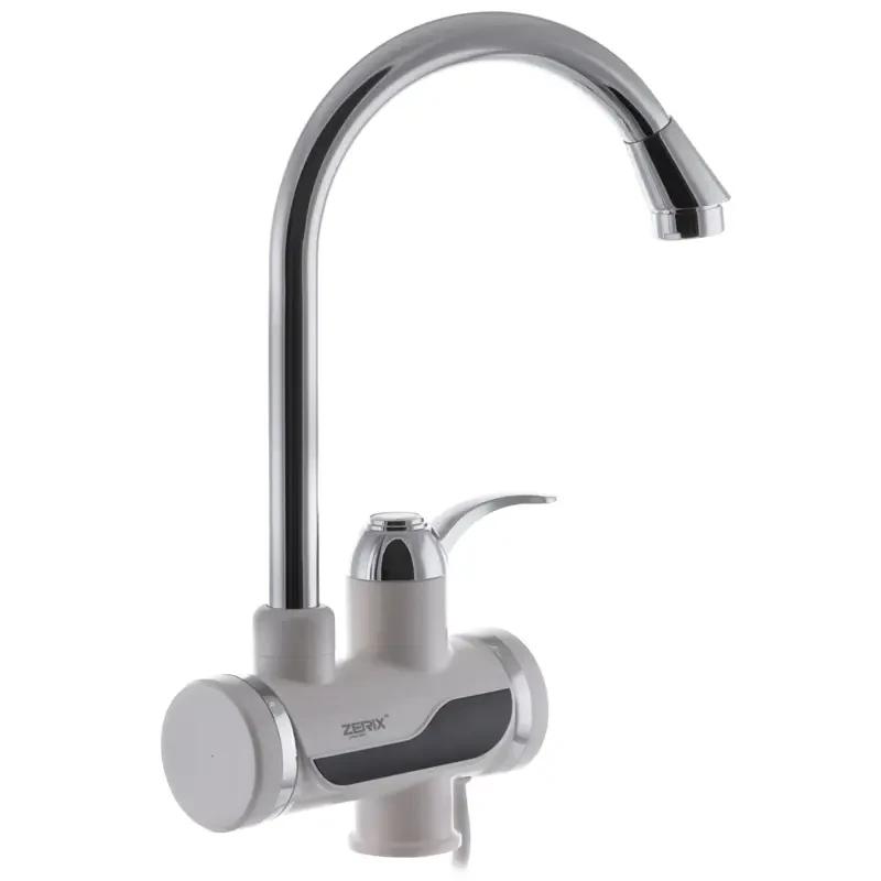 Опис - Виріб використовується для швидкого нагрівання проточної води в побутових цілях. - Під'єднується до магістралі холодного водопостачання за допомогою гнучкого шланга. - Висока якість використовуваних матеріалів забезпечує довговічність і надійність виробу. • Модель: ELW02-E • Тип излива: поворотний • Тип керування: одноважільний • Тип кріплення: гайка • Тип підводки: гнучка ✅ Споживана потужність: 3.6 кВт • Джерело живлення: мережа • Параметри електричної мережі: 220 В, 50 Гц • Індикатор температури води: да • Пристрій захисного вимкнення (ПЗВ): немає • 📌Шланги під'єднання: купуються окремо • Висота виробу, мм: 350 • Висота виливу, мм: 250 • Довжина виливу, мм: 190 ✅Максимальна температура підігрівання води 60 °C. ✅Захист електромережі. ✅Економія: води, електроенергії, часу. ✅Водонепроникний захист — IPX4. ✅Нагрівальний елемент: ELH-3000 • Матеріал: пластик • Цвет: білий / хром • Поверхня: глянсова 📦Комплектація: Змішувач, кріплення, посібник за монтажу та експлуатації, кабель завдовжки 1.2 м. 📌ЗВЕРНІТЬ УВАГУ! Під'єднання крана до електричної мережі можна здійснювати тільки після його встановлення в робочому положенні й тільки після того, як він буде заповнений водою! Виробник залишає за собою право вносити зміни в конструкцію виробів і комплектацію, що не погіршують якість, без попереднього повідомлення. Характеристики Бренд ZERIX Серія ELW02-E Матеріал пластик Колір білий Способ нагрева електричний Спосіб встановлення на мийку Потужність 3.6 кВт Ширина, мм 165 Висота, мм 350 Глибина, мм 230 Індикатор температури води є Пристрій захисного вимкнення (ПЗВ) немає
