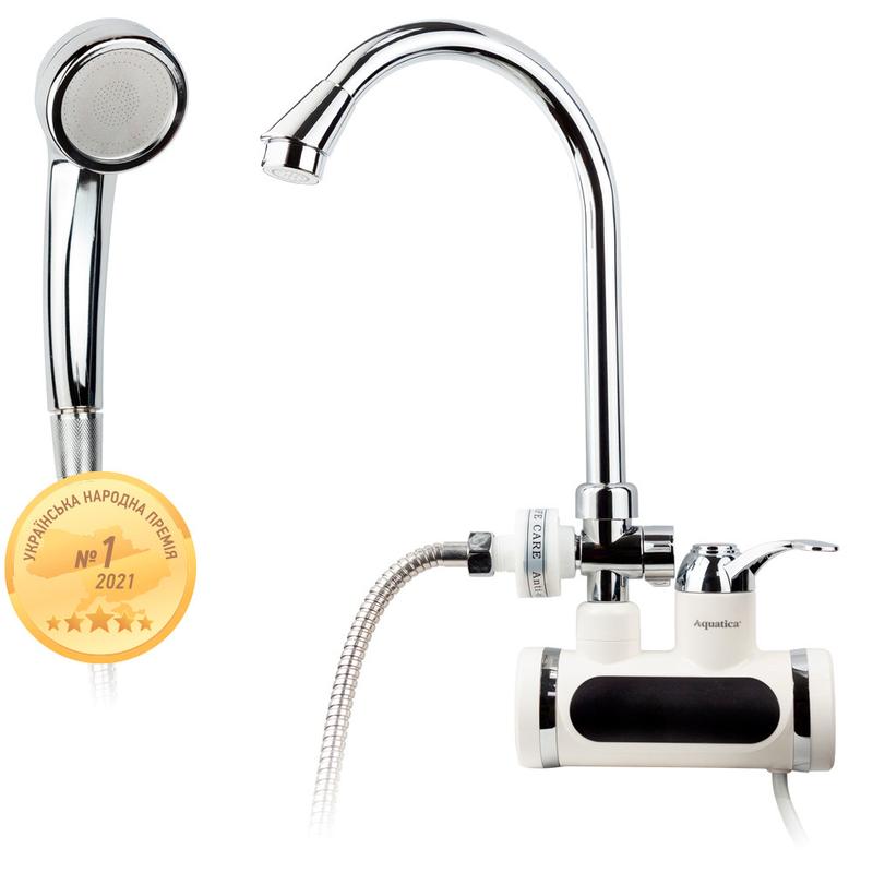 ## Кран водонагреватель проточный JZ 3.0кВт для ванной с душем и однорычажным управлением DM-11 Кран-водонагреватель проточный JZ 3.0кВт 0,4-5бар для ванны гусак ухо настенный AQUATICA (JZ-7C141W) - Класс защиты: IPX4 - Минимальное давление в системе водоснабжения: 0.4 бар - Максимальное давление в системе водоснабжения: 5 бар - Водородный показатель воды (pH): 6.5-8.5 - Общая минерализация воды: не более 1500 г/м³ - Только для чистой воды без примесей, содержащих абразивы (песок, глину, известь и т.д.) Кран водонагреватель проточный электрический JZ-7C141W представляет собой смеситель для душа с автономным подогревом воды. Обычно используется на даче, в квартире, бытовых помещениях общественного пользования, где нет возможности или необходимости устанавливать газовую колонку либо бойлер. Этот проточник состоит из белого термостойкого корпуса с нагревательными элементами внутри и цифровым дисплеем снаружи. Регулировка температуры и напора струи осуществляется с помощью небольшого рычага. Излив J-образный, поворотный, на «носике» установлен аэратор. В комплект также входит шланг с душевой лейкой на 2 режима и кронштейн. Особенности: - непрерывный доступ к горячей воде; - компактные габариты; - уникальный дизайн; - удобное однорычажное управление; - класс защиты: IPX4. Монтаж настенный, необходимо подключение к электросети с напряжением 220 В. Гарантия на проточный водонагреватель Акватика JZ-7C141W – 12 месяцев. Наименование Ед.Изм. Значение Артикул9793213 Длина кабеля, мм1200 Напряжение, В220 Частота, Гц50 (60) Номинальная мощность, кВт3 Масса, кг1,74 Официальная гарантияОт производителя ДисплейЦифровой, зеленый Комплектацияшланг для душа (нержавеющая сталь, 1500 мм), лейка для душа (АВЅ, 1 режим), кронштейн (ABS) ИзливJ-образный, поворотный 360° Материал смесителяТермостойкий ABS-пластик Нагревающий элементТЕН Ток13.6 А Поток горячей воды2–2.5 л/мин Температура горячей воды30–60 °С Тип монтажаНа стену Успейте заказать, количество штук по акции ограничено! Остерегайтесь подделок и низкокачественного товара, его сейчас очень много представлено под видом oригинaлa! Мы предлагаем высочайшее добротное качество товара на рынке Украины, который выполняет свою функцию и от которого вы будете получать только приятные эмоции. Почему покупают именно у нас? Отзывы и рекомендации реальных клиентов Наш магазин имеет многочисленные положительные отзывы от довольных клиентов. Вы можете ознакомиться с их опытом и рекомендациями в описании ниже и на нашем сайте, что поможет вам сделать обоснованный выбор. Прозрачность и честность Мы ведем открытую и честную политику в отношениях с клиентами и всегда идем навстречу. Все характеристики товаров, условия гарантии и обмена четко указаны на нашем сайте, что позволяет избежать недоразумений и обеспечивает доверие клиентов. Легкая система возврата товаров Мы понимаем, что иногда товар может не подойти Вам по тем или иным причинам. Поэтому мы предлагаем гибкую и прозрачную систему возврата товаров, что обеспечивает вам спокойствие и уверенность в вашей покупке. Высокий уровень обслуживания клиентов, 10 лет опыта Наши специалисты всегда готовы предоставить профессиональную консультацию и помощь в выборе товара. Мы ценим каждого клиента и стремимся сделать процесс покупки максимально комфортным и приятным. Быстрая доставка и удобные условия оплаты Мы предлаг