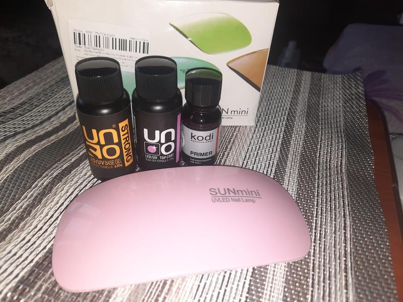 Маникюрный набор база +топ Уно по 30 мл,кислотный праймер,мини лампа отлично сушит занимает мало места работает от юэссе кабеля