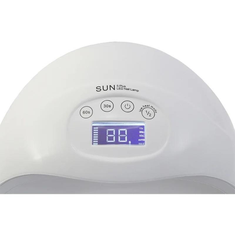 Ультрафиолетовая LED лампа с таймером SUN5 plus 48W ― лампа высокого качества и высокой мощности для различных видов гелей и лаков Новинка на рынке лампа SUN5 plus, данная лампа сочетает в себе все последние технологии. Лампа предназначена для сушки гелей, акрилов, УФ лаков и шеллаков. Благодаря высокой мощности, в лампе можно сушить практически все гели, лаки и шеллаки. Лампа предназначена для профессионального использования, но возможно также и использования в домашних условиях. Лампа имеет цифровой индикатор времени. Характеристики: - 24 светодиода для равномерного освещения с длительным сроком службы (термин службы около 50 000 часов) - встроенный таймер на 15с / 30с / 60с и сенсор до 99с - цифровой индикатор времени - сенсорные кнопки - сенсорные кнопки - сенсор движения - мощность лампы можно менять 24Вт/48Вт - съемное дно на магнитах - длина волны 365nm +405nm Технические данные: Напряжение электросети: 220-240V Мощность: 48 Вт Таймер: 15/30/60сек Тип лампы: светодиоды Время наработки на отказ ― около 50 000 часов. Размеры (Д*Ш*В) - 236*195* 115мм