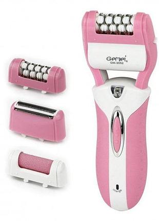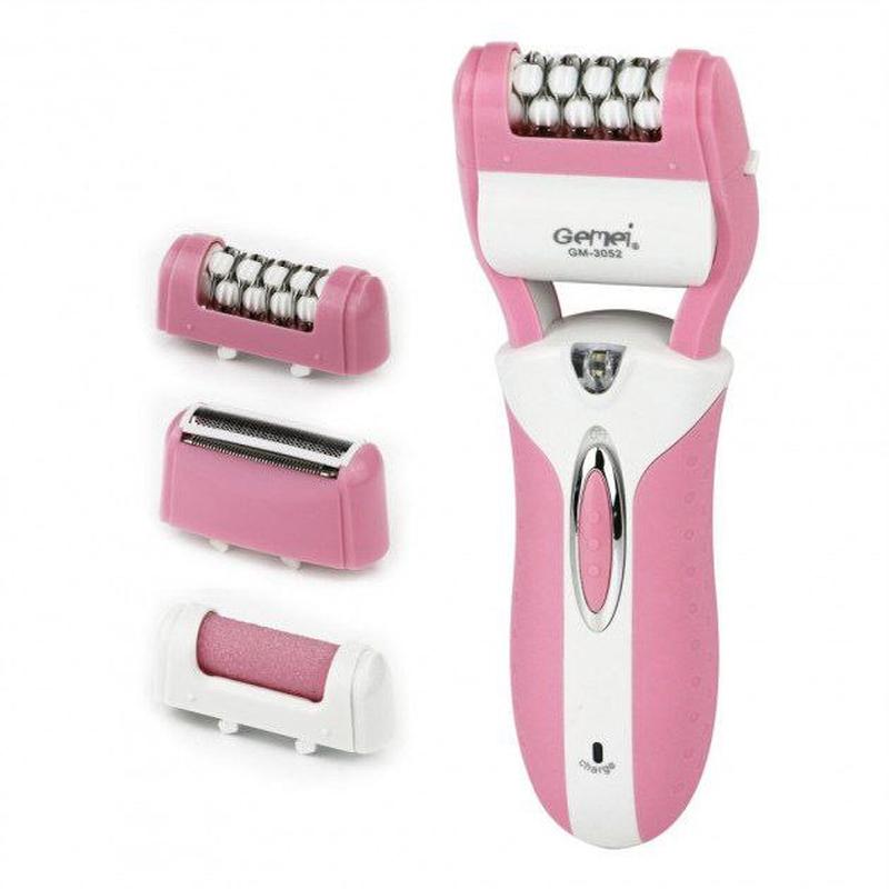 Универсальный эпилятор это  портативный, удобный и простой в применении прибор. Эпилятор позволяет избавиться от нежелательных волос на любых участках кожи на длительный срок. Возможно применение на  чувствительных участках зона бикини, подмышками. У комплект входить  роликовая пилочка для ступней. Насадка  пемза мягко и быстро удаляет загрубевшую кожу, делая пятки абсолютно гладкими. Роликовая вращающаяся головка действует бережно, не требуется распаривания кожи перед использованием. Процесс пилинга быстрый, не нужно страдать с ваннами, водой и скребками. Отлично подходит для сухой кожи, удобная форма пилы, надежный, долговечный ролик. />Элект-роботовая Gemei GM 3052 Pro 3 в 1 оснащена двойным лезвием из стали с двумя супертонкими сопутствующими покрытиями: сетчатым и зубчатым.Зубчатое покрытие применяется для удаления длинных волосков, а сетчатое для более коротких и вросших волосков. Бритва  качественно удаляет любые типы волос при этом совершая легкий массаж кожи. Характеристики: Применение: сухая эпиляция; Материал: алюминиевый сплав, пластик; Рабочее напряжение: 100-240 В; Тип питания: аккумулятор, домашняя сеть; Время работы от аккумулятора: 40 минут; Время зарядки: 8 часов; 3 насадки: роликовая насадка, насадка для бритья и тримминга, насадка для зоны бикини и подмышек; Цвет: розовый; LED подсветка для дополнительного освещения Комплектация: Эпилятор Gemei GM 3052 (24 пинцеты) Сетевой адаптер для зарядки Насадка-эпилятор Насадка-пемза Насадка-бритва Щетка для очистки Инструкция Фирменная подарочная коробка Цена 650 грн
