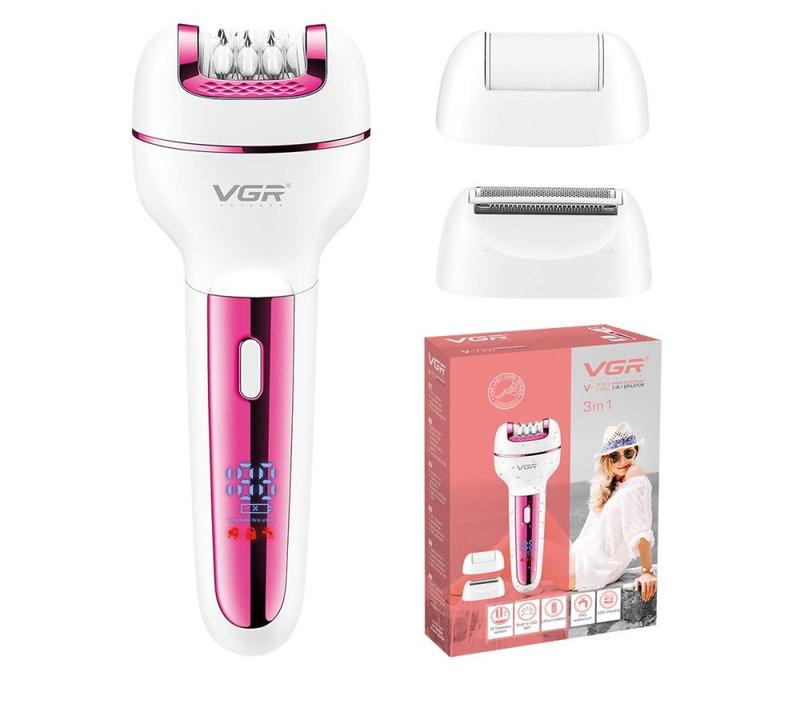 Эпилятор 3в1 VGR V-732 с 3 насадками LED – универсальное устройство для мягкого и эффективного удаления волос. Три сменные насадки обеспечивают возможность эпиляции, бритья и ухода за огрубевшей кожей. LED-дисплей информирует о состоянии зарядки и режиме работы. Устройство работает в автономном режиме до 90 минут после полной зарядки. Легкий корпус и компактные габариты делают модель удобной как дома, так и в путешествиях. Характеристика: - Аккумулятор 600 мАч - Время работы: до 60 минут - Время зарядки: 1,5-3 часа - Защита от влаги: IPX5 - Дисплей: LED индикатор уровня заряда - Насадки: 3 сменные (эпиляция, бритье, пилинг) Комплектация: - Эпилятор 3в1 VGR V-732 - 3 сменные насадки - USB-кабель для зарядки - Щетка для очистки насадок - Упаковка/ Инструкция *Внешний вид товара и комплектация могут отличаться от изображения на сайте и зависят от поставки