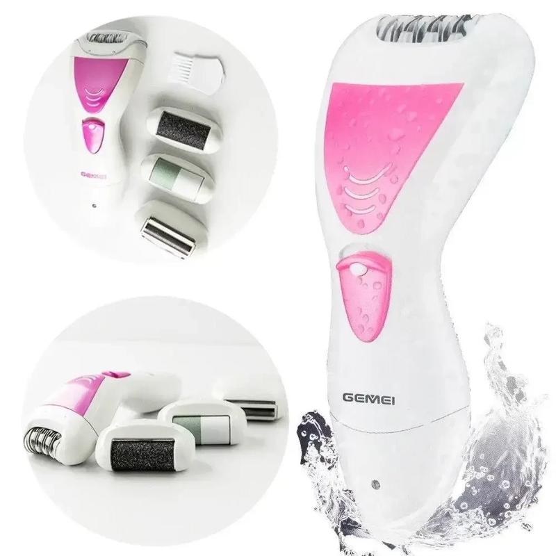 Женский эпилятор электробритва 4 в 1 Geemy GM-7006 Вопрос удаления нежелательных волос на разных участках тела возникает все чаще. Сделать это качественно и безболезненно поможет профессиональный эпилятор Geemy GM-7006. Этот многофункциональный прибор не только поможет избавиться от нежелательных волос на теле, но с помощью специальной насадки прекрасно отполирует кожу на ступнях. Характеристики: Бритвенная головка Geemy GM-7006 позволит удалить волоски в интимной зоне. Бритва имеет 2 лезвия с 2-ух сторон и лезвие-сеточку между ними, что сделает кожу гладкой, не повредив ее целостность; Пилочка для пяточек сделает ножки мягкими, как у младенцев; Широкая эпиляторная головка позволяет обрабатывать большую поверхность кожи ног. Удаление нежелательной растительности с эпилятором - это процедура, эффект после которой сохраняется на долго; Роликовая полировка - баф для ногтевой пластины позволит выровнять ноготь - убрать все недостатки и отполировать поверхность; Данная модель работает от встроенного аккумулятора; Время работы около 45 мин.; Время заряда около 8 часов. Эпилятор Geemy GM-7006 подходит для эпиляции в ванной или душе. Бритвенная насадка с двойными лезвиями из стали и защитной сеточкой позволит обработать самые нежные интимные зоны, без раздражения и болезненных ощущений. Насадка пемза мягко и быстро удаляет огрубевшую кожу, делая ступни совершенно гладкими. Вращающаяся роликовая головка действует бережно, не требуется распаривания кожи перед использованием. Просто незаменимый прибор в арсенале любой женщины, желающей всегда выглядеть безупречно. Элегантный дизайн разработан специально для удобного использования, насадки меняются просто и быстро. Профессиональный Geemy GM-7006 поможет вам выбросить станки, восковые полоски, наборы для шугаринга и пинцеты в мусорку. Вы сами сделаете гладкими не только свои ножки и руки с зоной подмышек и бикини, но и сможете делать педикюр самостоятельно. Комплектация: Эпилятор Geemy GM-7006; Роликовая головка для полировки ногтей; Роликовая пилка для ног; Электробритва с 2-мя лезвиями; Инструкция (на английском языке); Блок питания; Фирменная коробка.