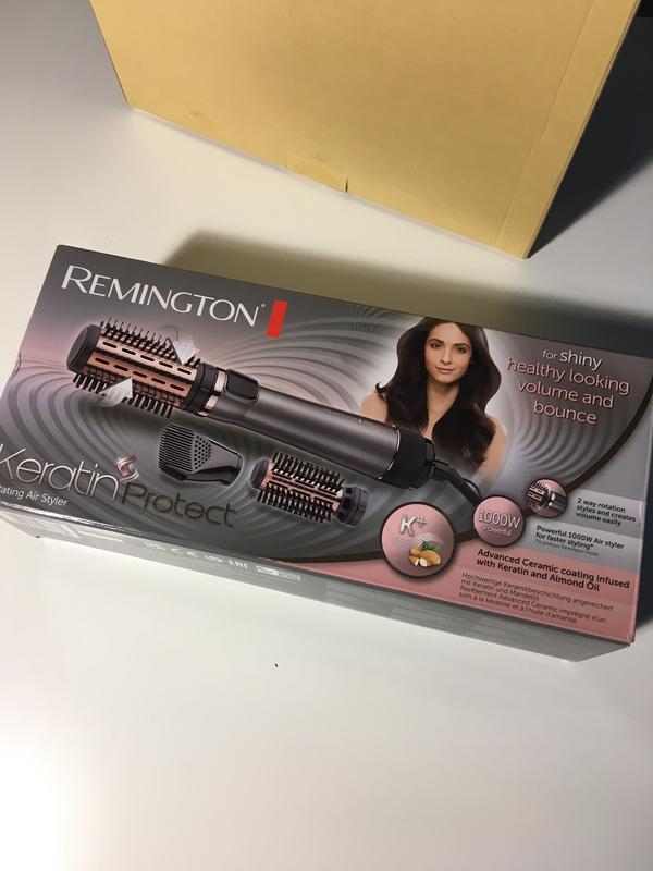 Фен-щетка REMINGTON AS8810 Keratin Protect 1000Вт Воздушный стайлер Keratin Protect – это отличный прибор для укладки непослушных кончиков, придания формы и объема волосам -Стайлер вращается в обе стороны и обладает мощным мотором 1000Вт -2 температурных режима -основа стайлера имеет керамическое покрытие, содержащее миндальное масло и Кератин -2 насадки 50мм и 40мм со смешанными щетинками для объема и натуральных волн - 1 насадка для создания прикорневого объема - вращающийся шнур длиной 3 м Покупался в Польше, в использовании был около 1,5мес, продаю поскольку дома пользуюсь другим феном Подходит для коротких волос, каре до плечей. На браше оч густые щеточки-кисточки и если для коротких волос это норм, то для длинных есть вероятность запутывания волос.