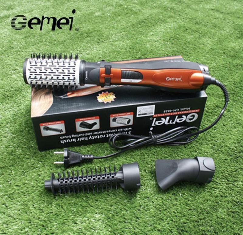Gemei GM-4828 сочетает в себе различные насадки для укладки волос. Стайлер-фен для волос поможет девушкам сделать прическу на любой вкус: мелкие и крупные кудри, объем и многое другое. Достаточно простой в использовании, имеет 3 насадки. Работает от сети 220 В. Характеристики: - Потребляемая мощность: 1000 Вт; - Количество насадок: 3; - Питание: Сеть; - Терморегулятор: Нет. Комплектация: - Стайлер; - Насадки – 3 шт.